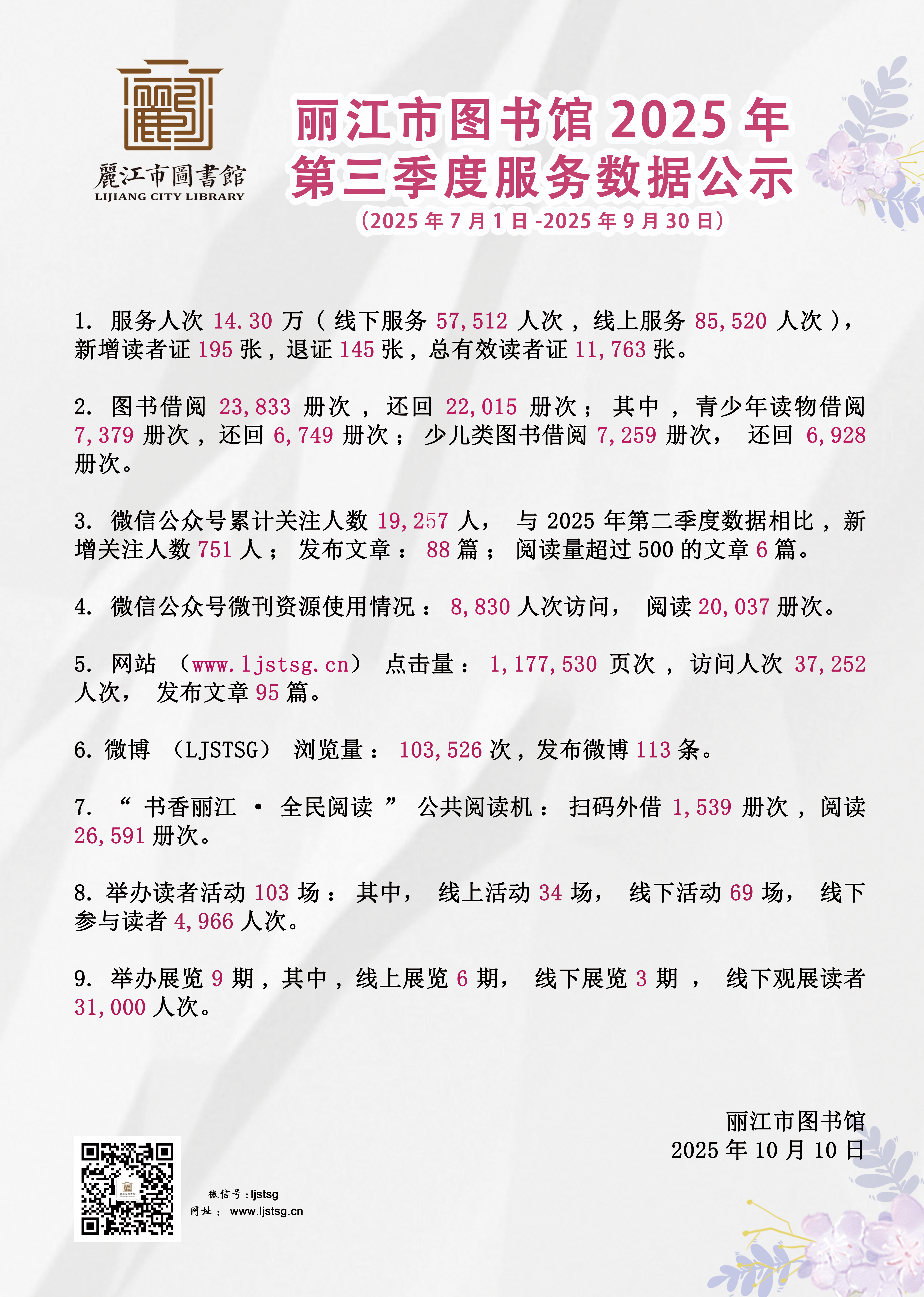 丽江市图书馆2025年第三季度服务数据公示