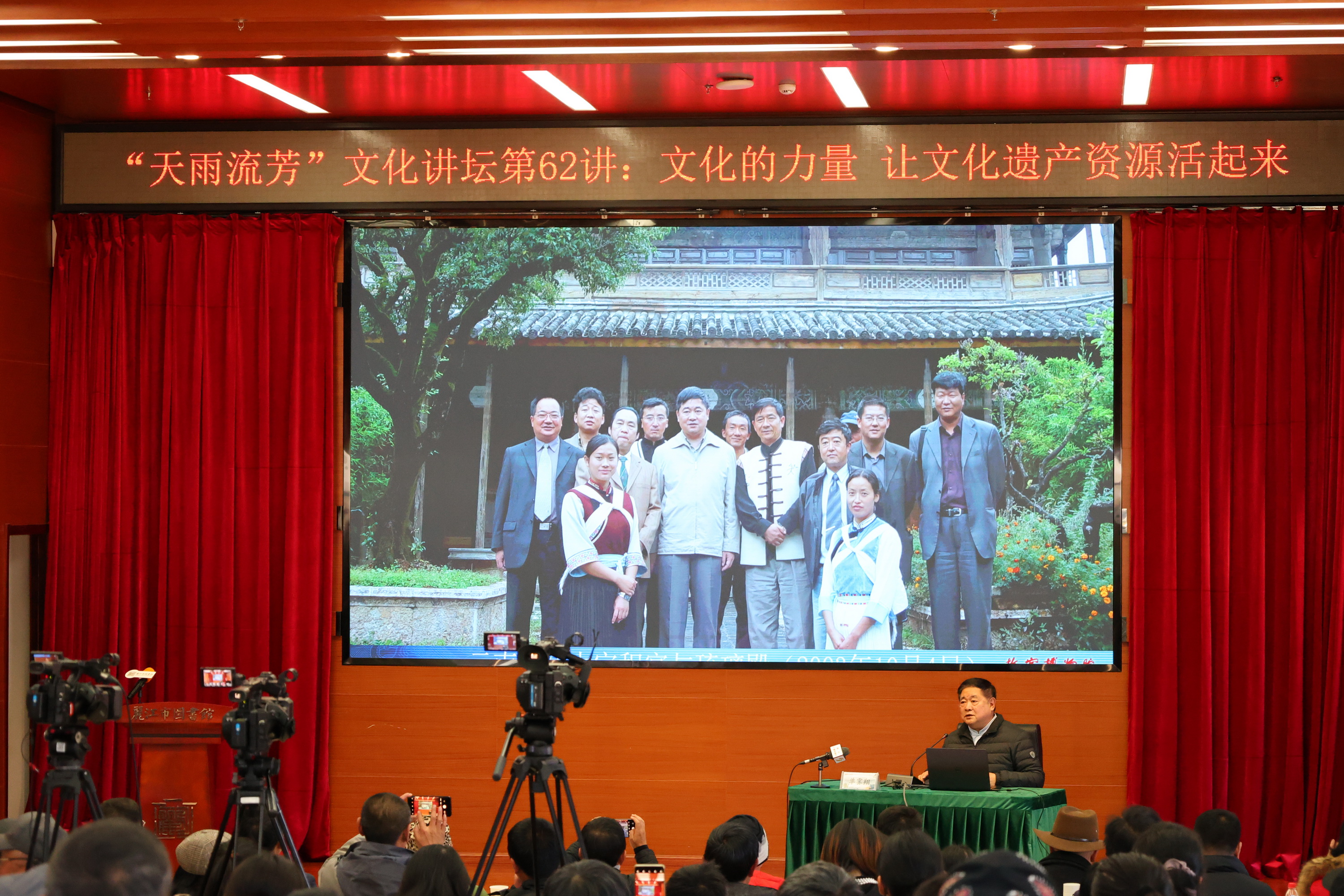 2026年1月13日下午,故宫博物院学术委员会主任、中国文物学会专家委员会主任单霁翔先生受邀前来丽江市图书馆,以《文化的力量,让文化遗产资源活起来》为主题开讲“天雨流芳”文化讲坛第62讲,为现场近260名读者带来了一场关于文化遗产保护与活化利用的经验分享和知识风暴。