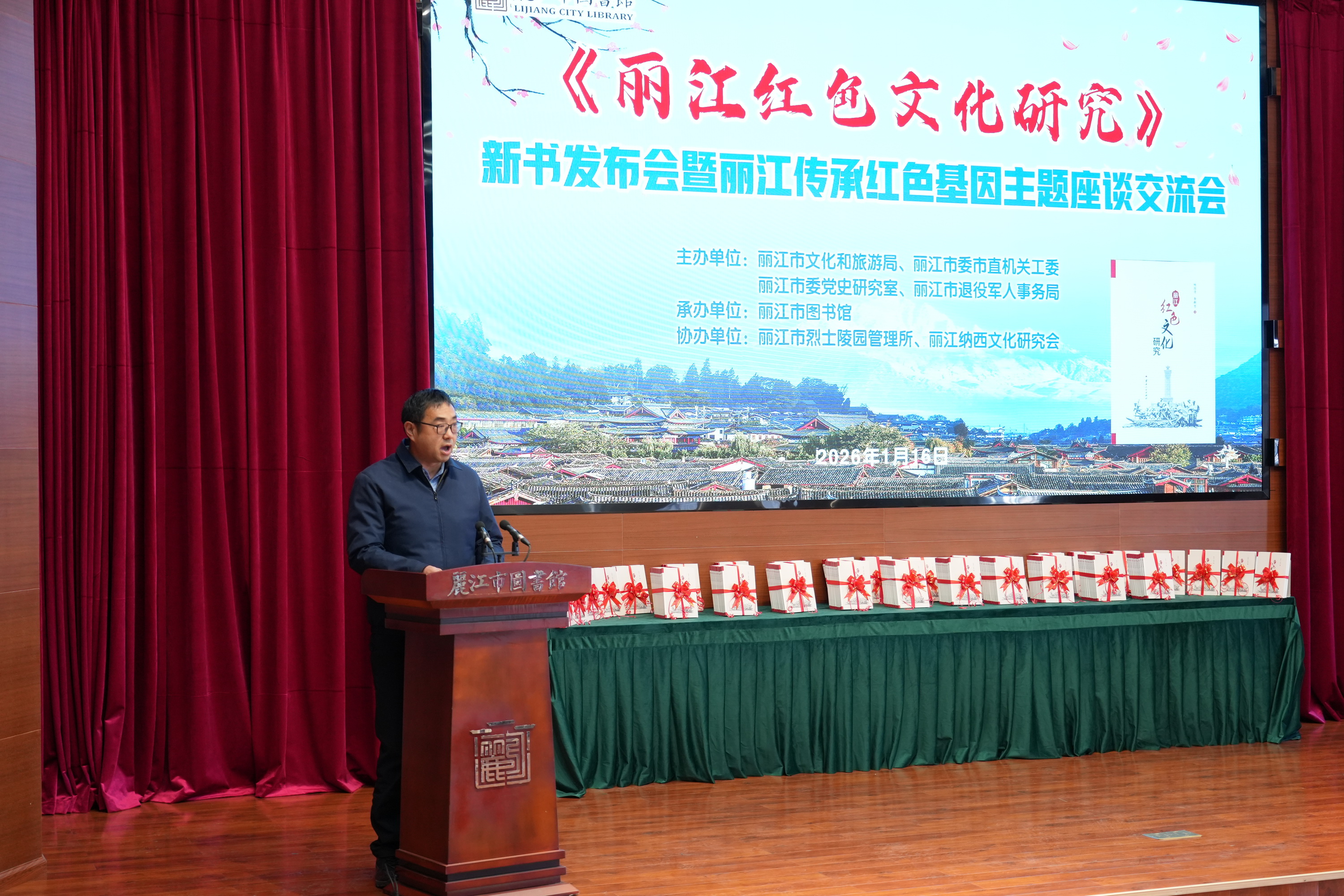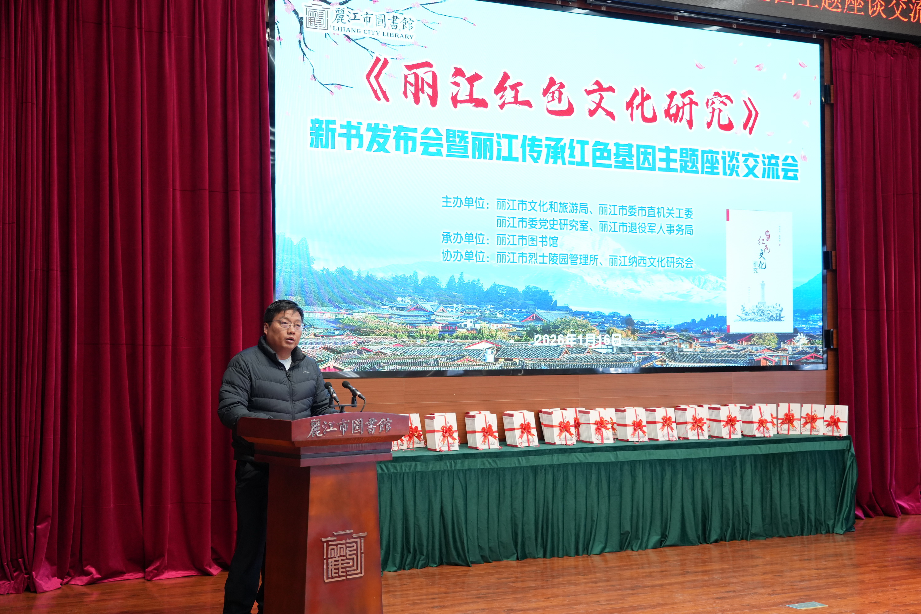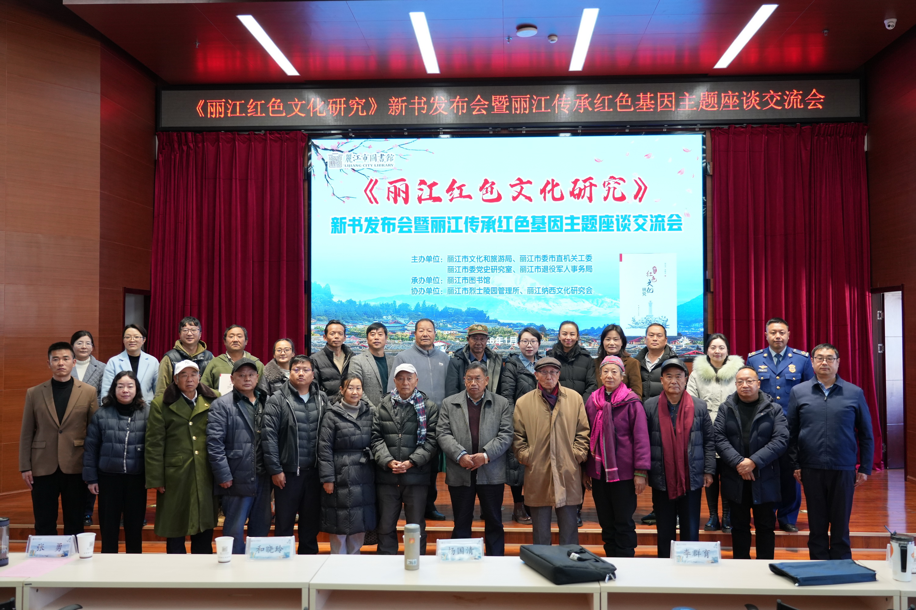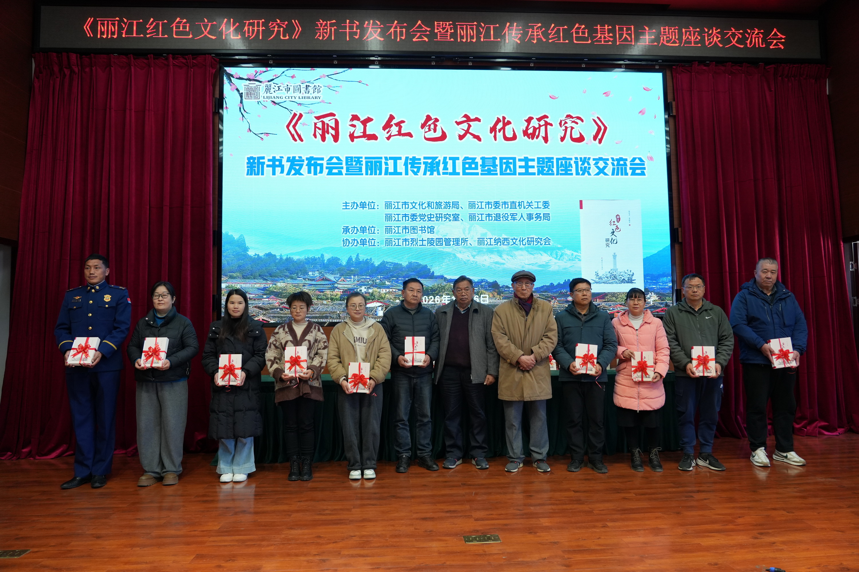 2026年1月16日上午,《丽江红色文化研究》新书发布会暨丽江传承红色基因主题座谈交流活动在市图书馆三楼报告厅举行。来自全市各界约200名代表齐聚一堂,共同见证新书发布,深入探讨丽江红色基因的传承与发展。