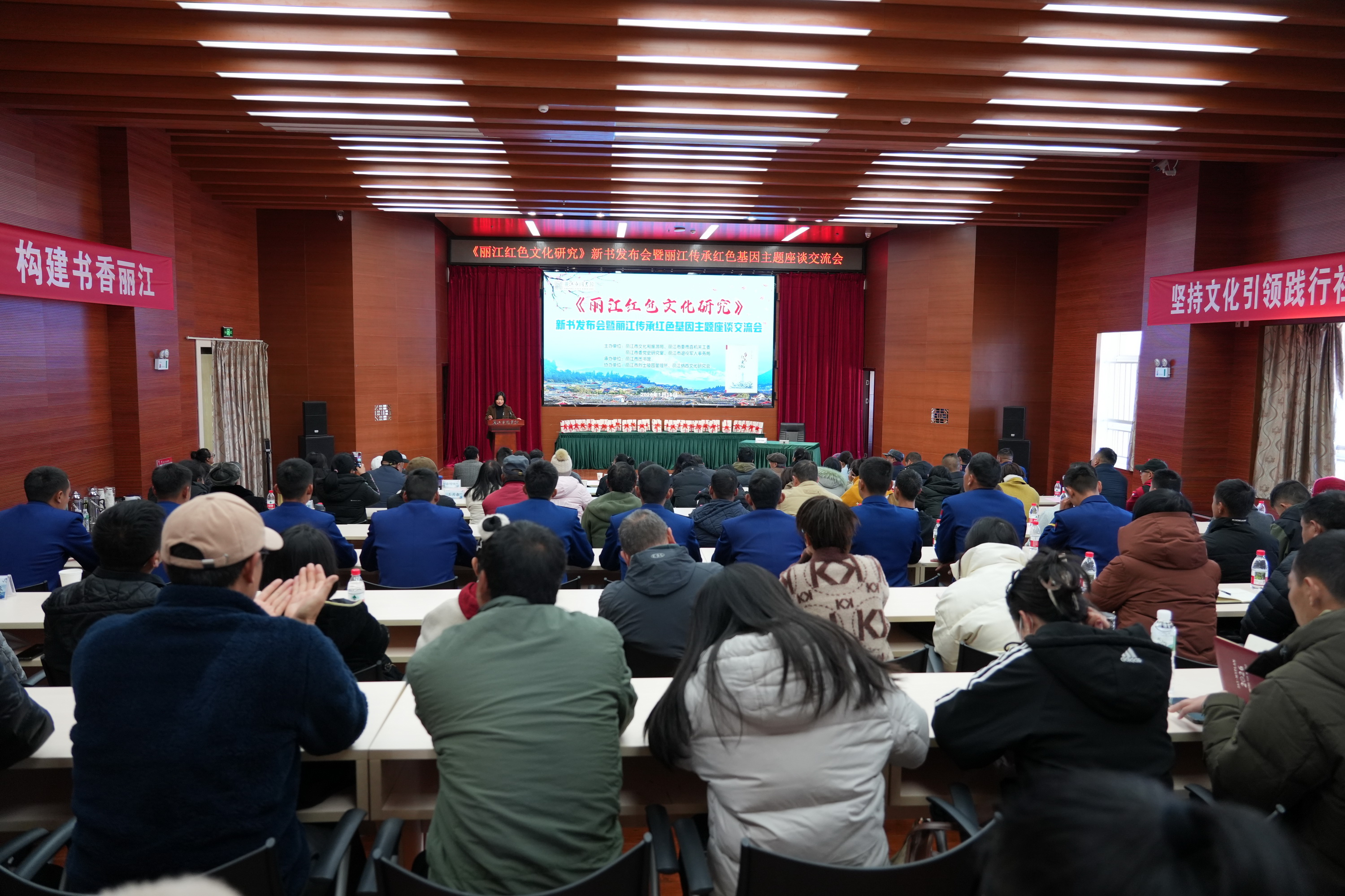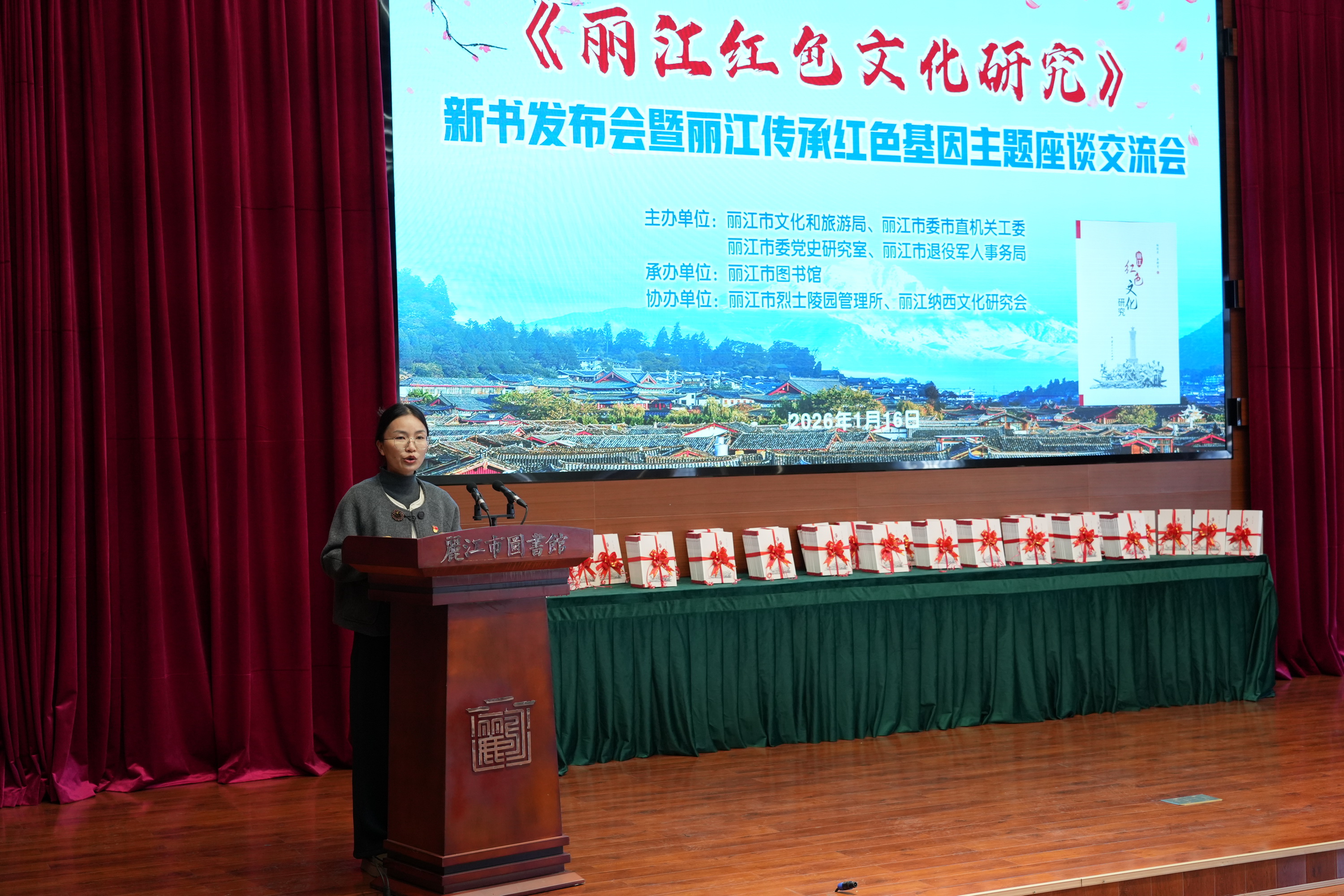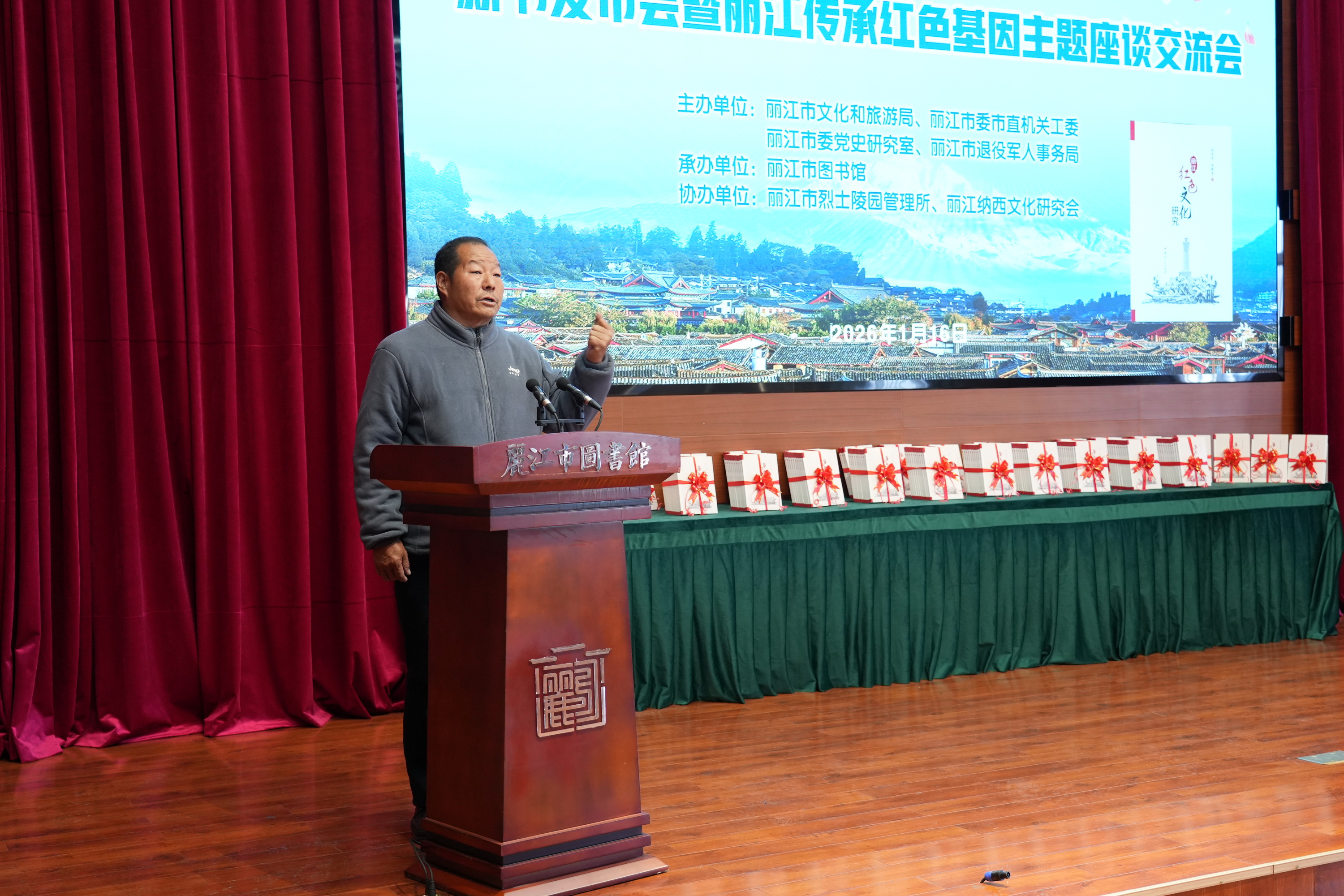 2026年1月16日上午,《丽江红色文化研究》新书发布会暨丽江传承红色基因主题座谈交流活动在市图书馆三楼报告厅举行。来自全市各界约200名代表齐聚一堂,共同见证新书发布,深入探讨丽江红色基因的传承与发展。
