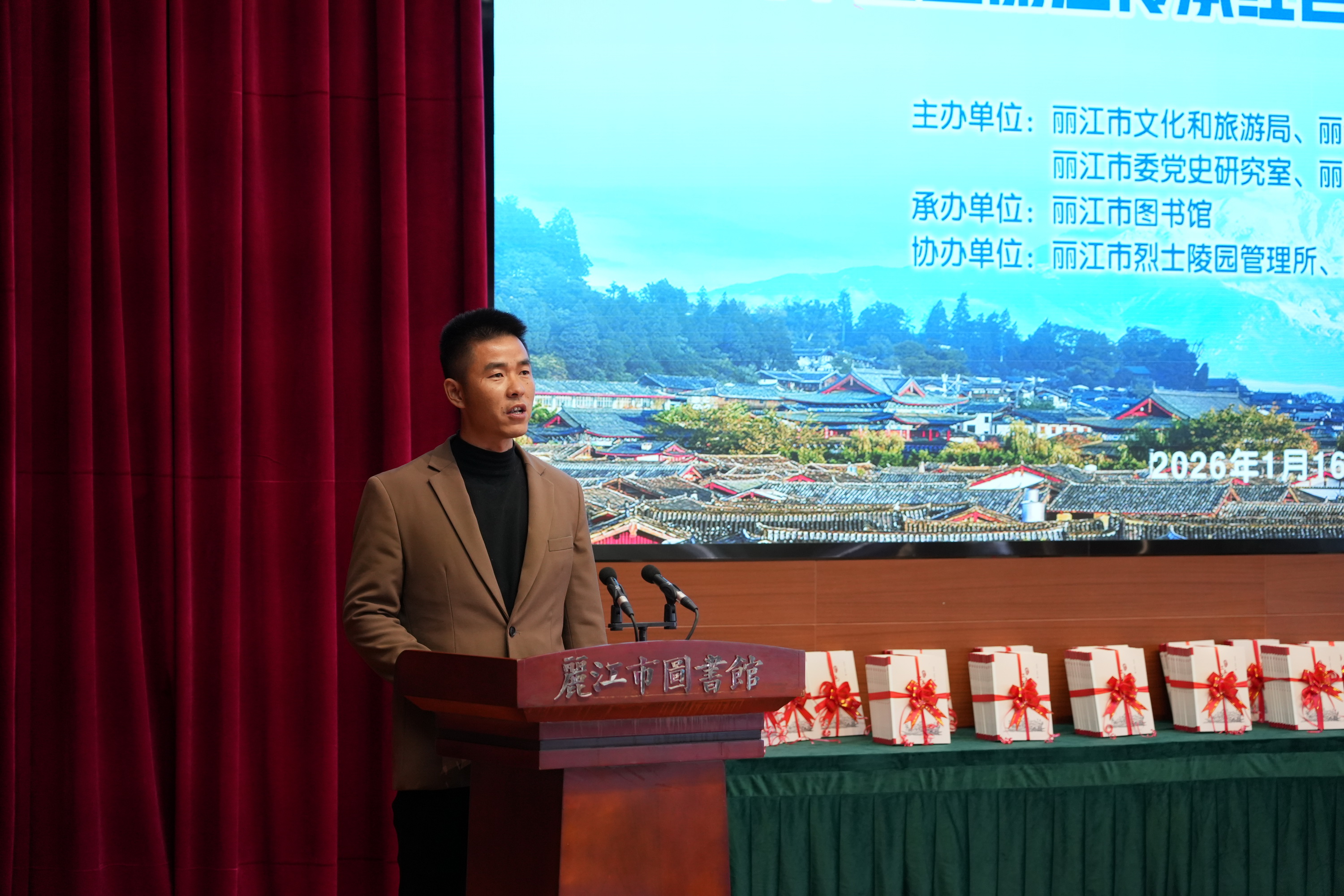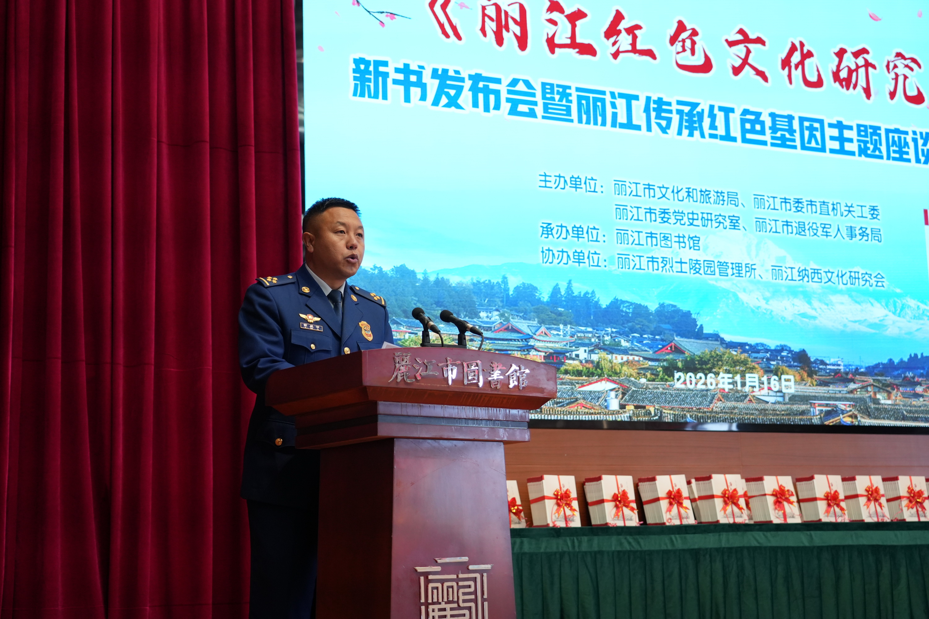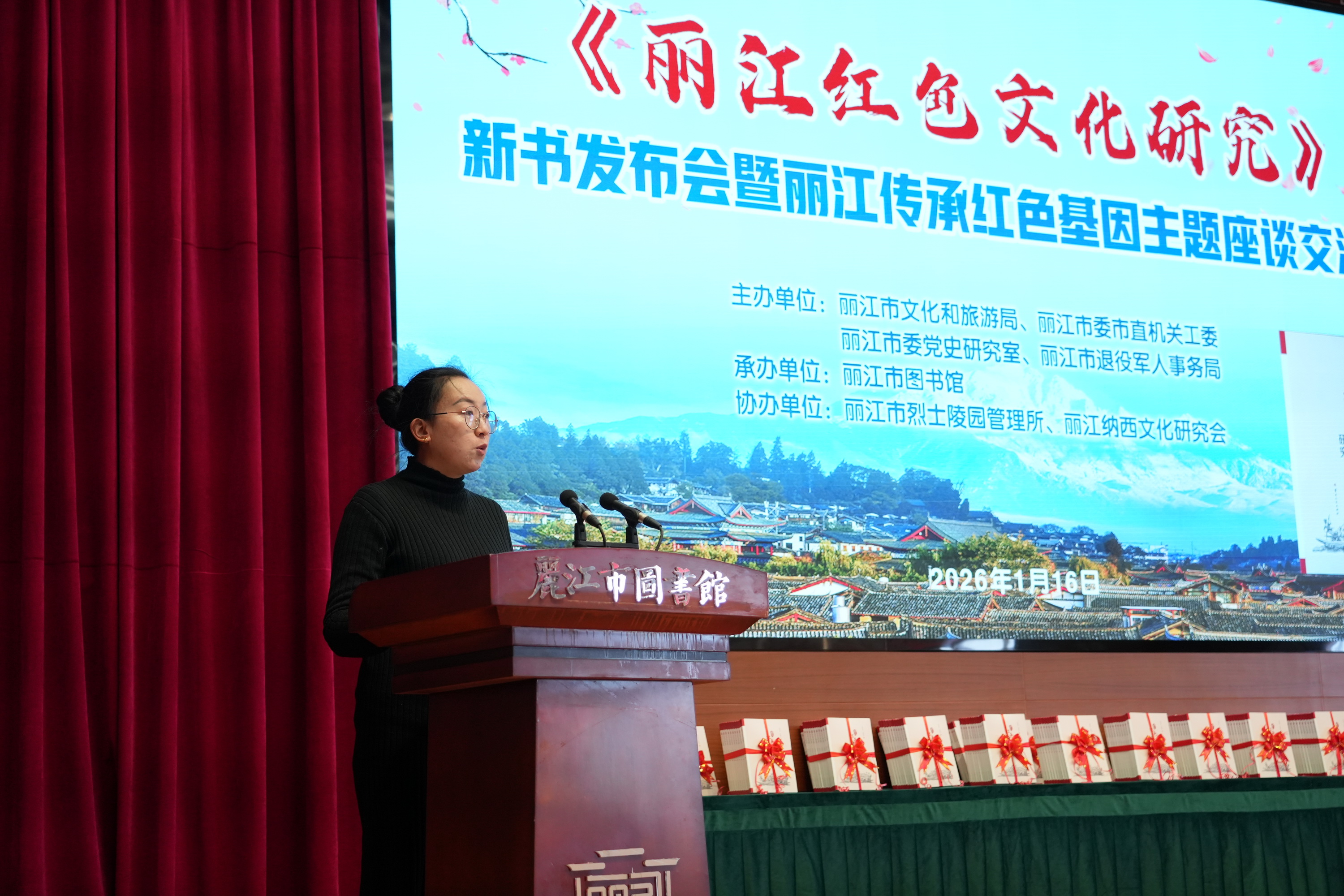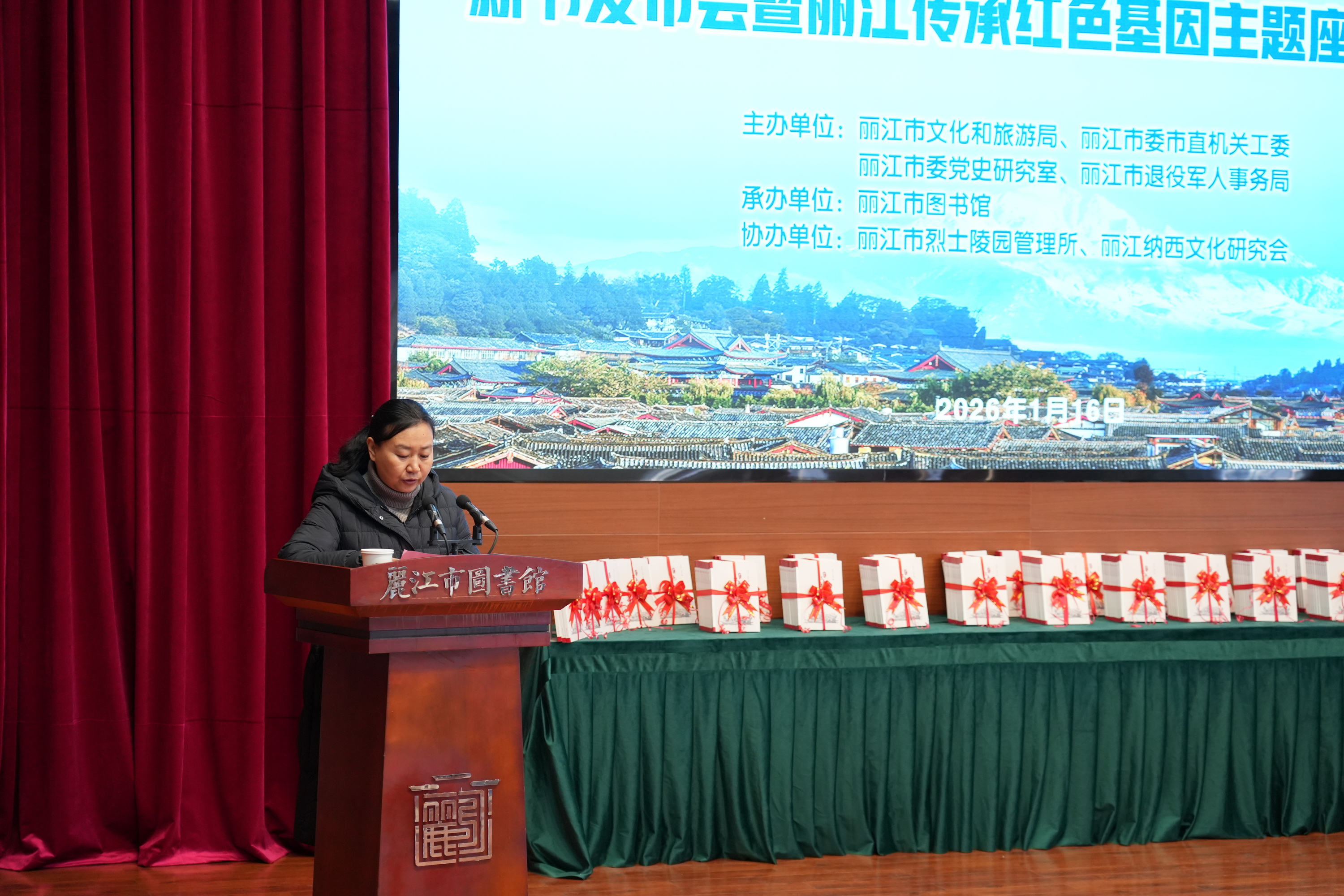 2026年1月16日上午,《丽江红色文化研究》新书发布会暨丽江传承红色基因主题座谈交流活动在市图书馆三楼报告厅举行。来自全市各界约200名代表齐聚一堂,共同见证新书发布,深入探讨丽江红色基因的传承与发展。