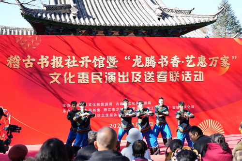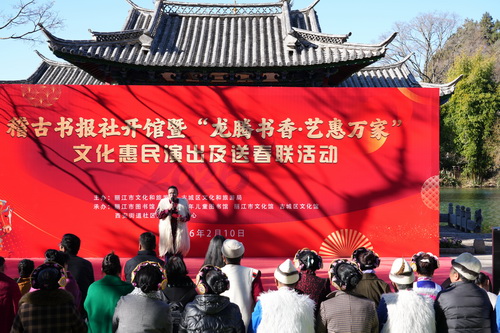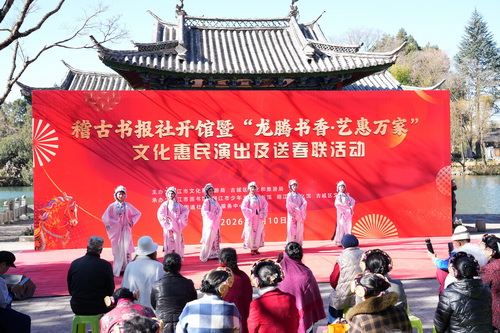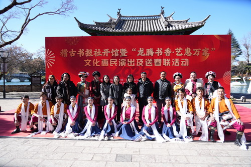 2月10日,由丽江市图书馆与古城区文化馆联合打造的特色分馆“稽古书报社”在黑龙潭公园举行开馆仪式,并同期开展惠民演出、送春联、健康义诊等活动。