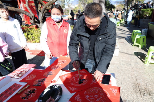 “文化兴则国运兴,文化强则民族强。春节是中华民族重要的传统节日,写春联、赏演出、品书香,是传承千年的文化习俗,也是最具烟火气的年味表达。”据丽江市文化和旅游局党组成员、副局长张勇介绍,将开馆仪式与送福惠民、文艺展演融为一体,正是为了让文化空间“活”起来、让传统年俗“热”起来、让文旅惠民“实”起来,用笔墨传递祝福,用艺术温暖人心,不断满足人民群众对美好生活的新期待。