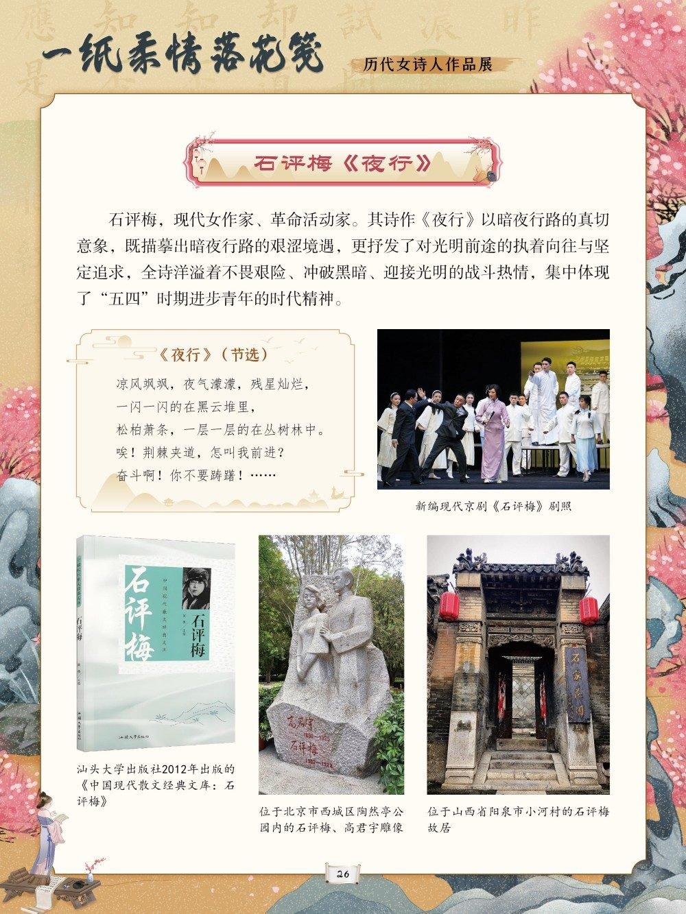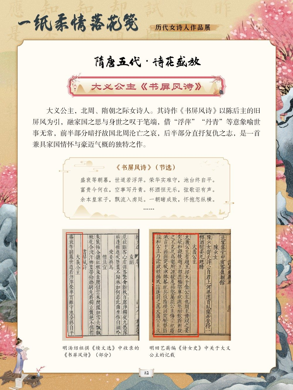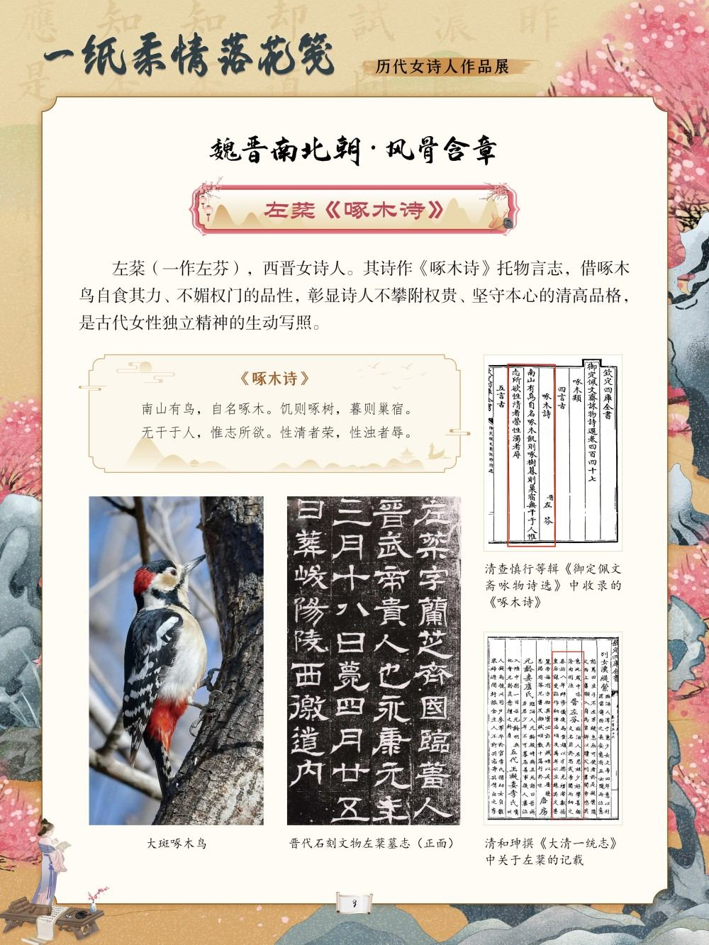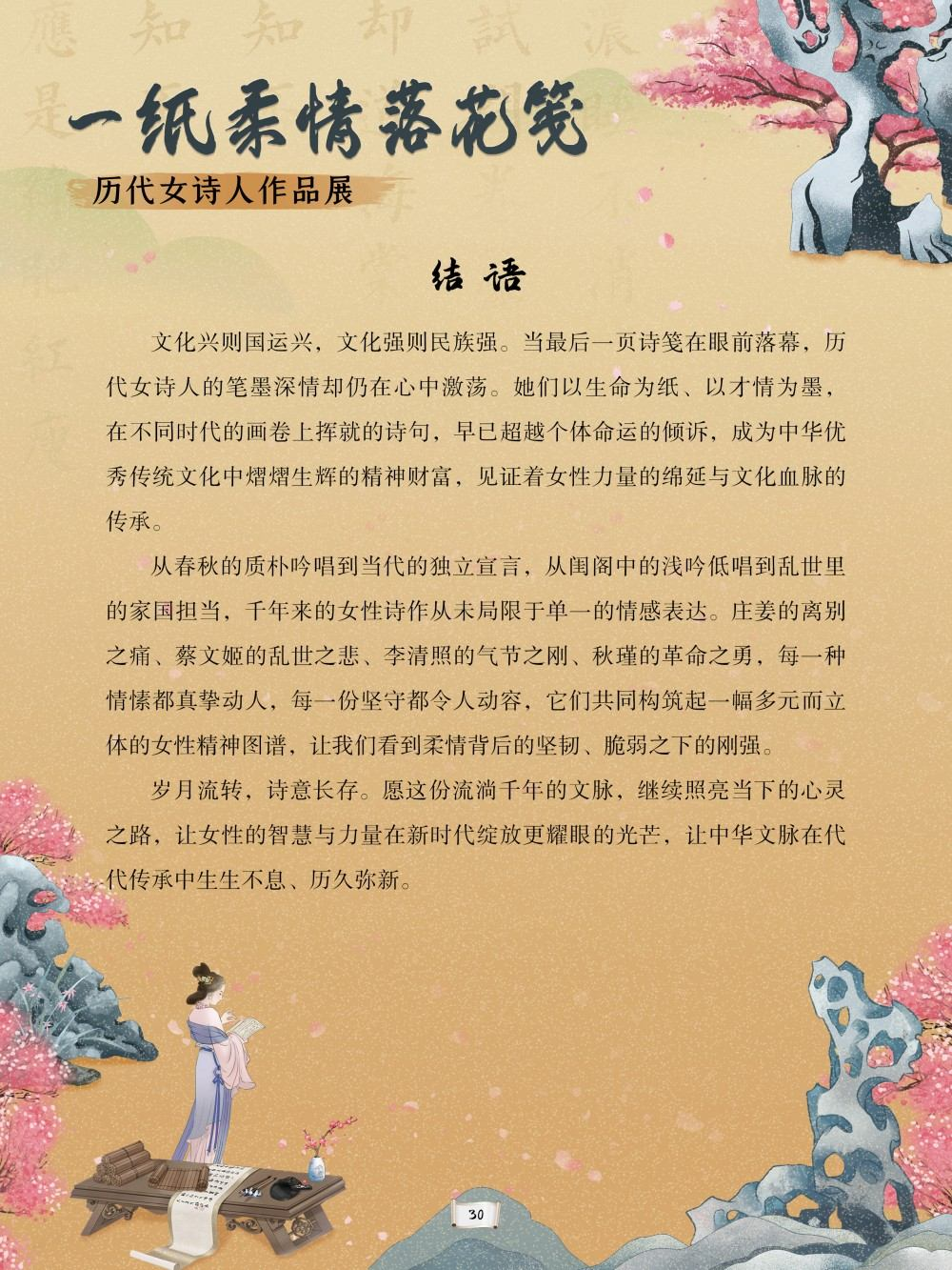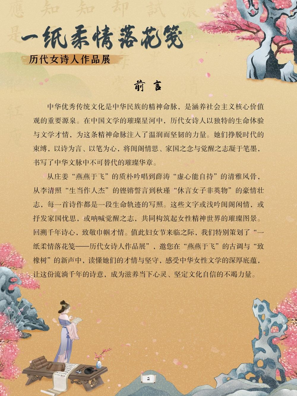 中华优秀传统文化是中华民族的精神命脉,是涵养社会主义核心价值观的重要源泉。在中国文学的璀璨星河中,历代女诗人以独特的生命体验与文学才情,为这条精神命脉注入了温润而坚韧的力量。她们挣脱时代的束缚,以诗为言、以笔为心,将闺阁情思、家国之念与觉醒之志凝于笔墨,书写了中华文脉中不可替代的璀璨华章。