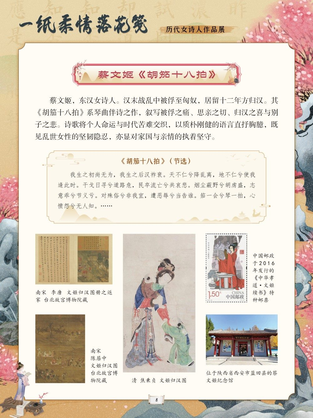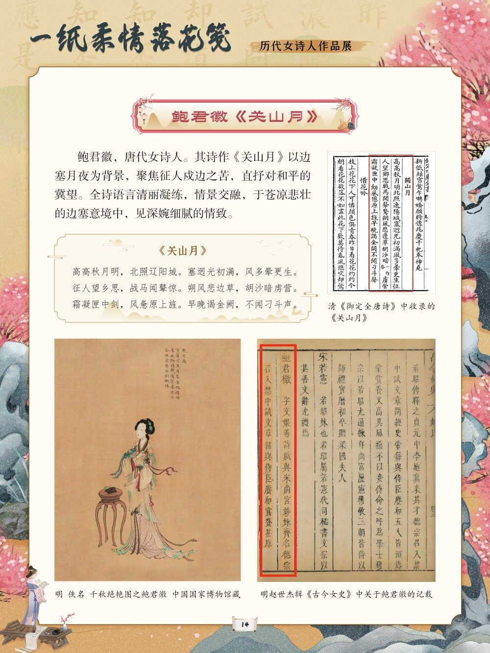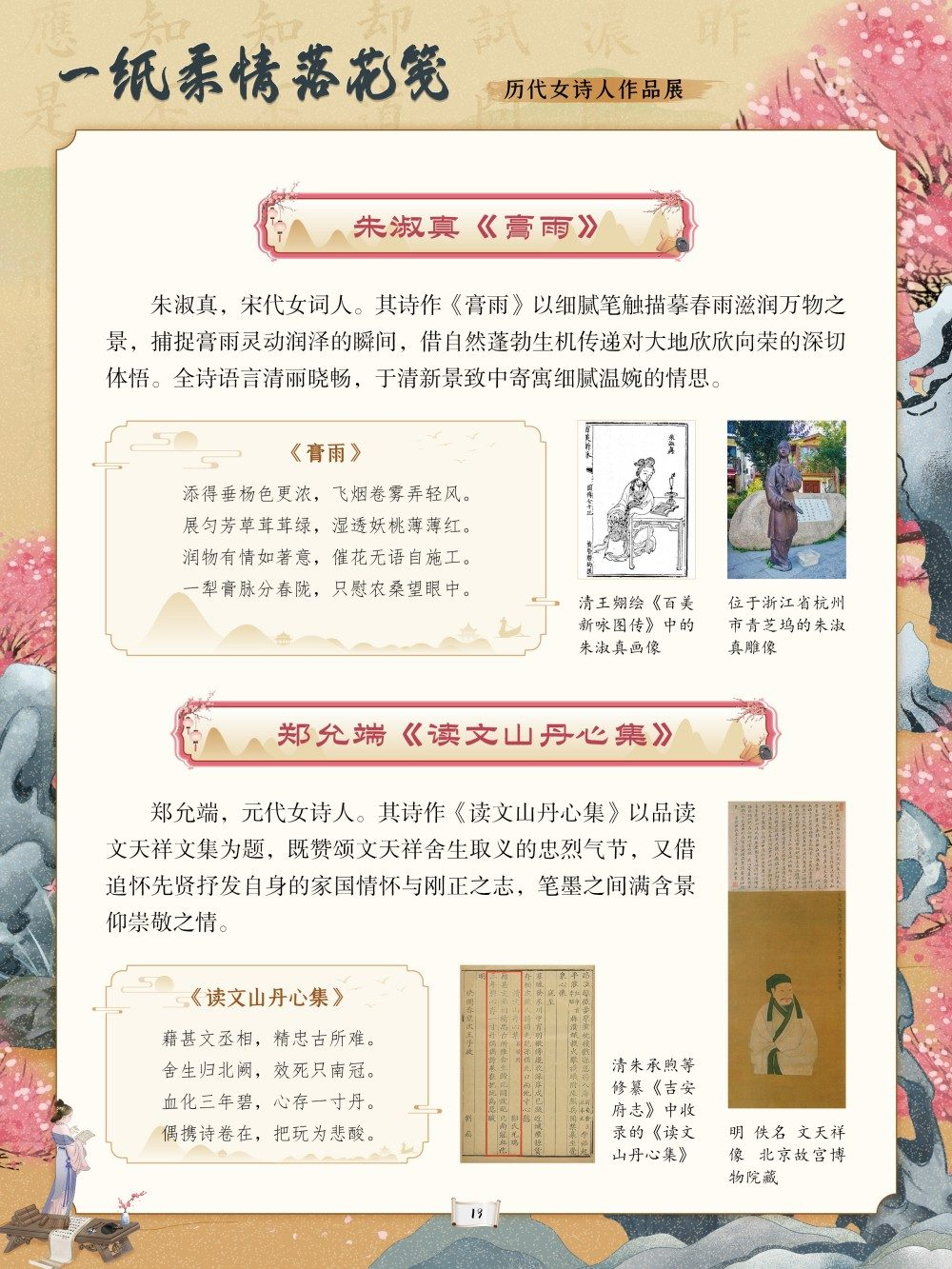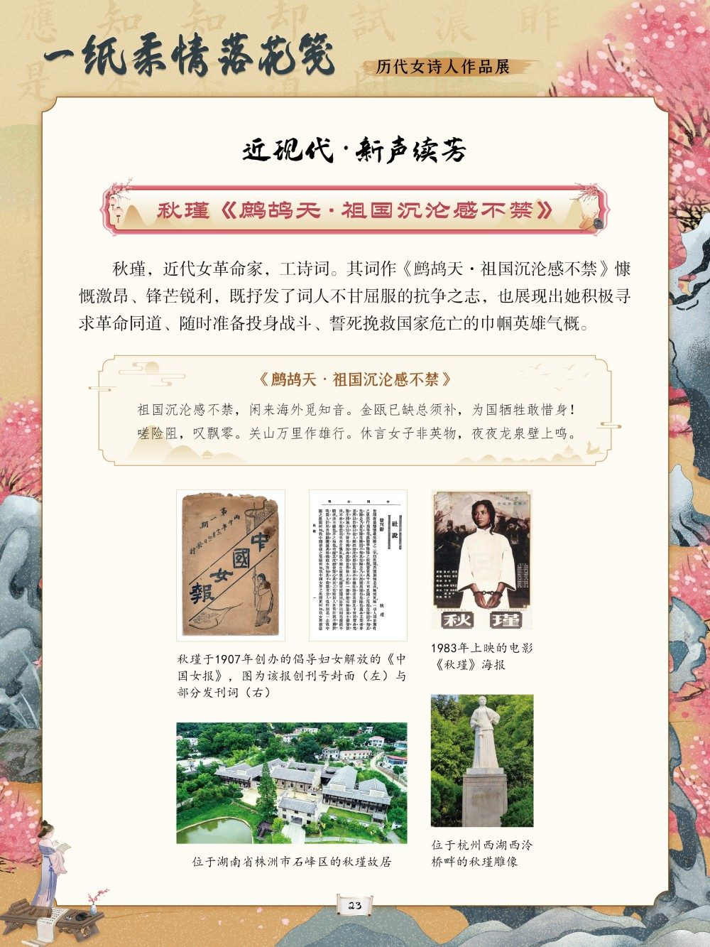 从庄姜“燕燕于飞”的质朴吟唱到薛涛“虚心能自持”的清雅风骨,从李清照“生当作人杰”的铿锵誓言到秋瑾“休言女子非英物”的豪情壮志,每一首诗作都是一段生命轨迹的写照。这些文字或浅吟闺阁闲情,或抒发家国忧思,或呐喊觉醒之志,共同构筑起女性精神世界的璀璨图景。回溯千年诗心,致敬巾帼才情。值此妇女节来临之际,我们特别策划了“一纸柔情落花笺——历代女诗人作品展”,邀您在“燕燕于飞”的古调与“致橡树”的新声中,读懂她们的才情与坚守,感受中华女性文学的深厚底蕴,让这份流淌千年的诗意,成为滋养当下心灵、坚定文化自信的不竭力量。