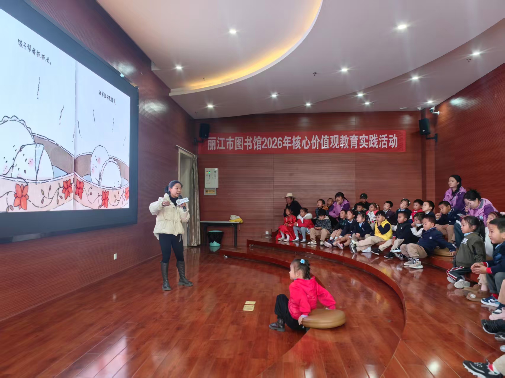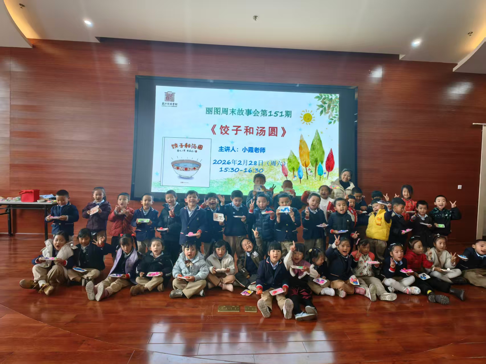 2026年2月28日下午,丽图周末故事会第151期在丽江市图书馆如期举行。本次活动特邀一颗童心幼儿园的小霞老师,为孩子们讲述绘本《饺子和汤圆》的可爱故事。