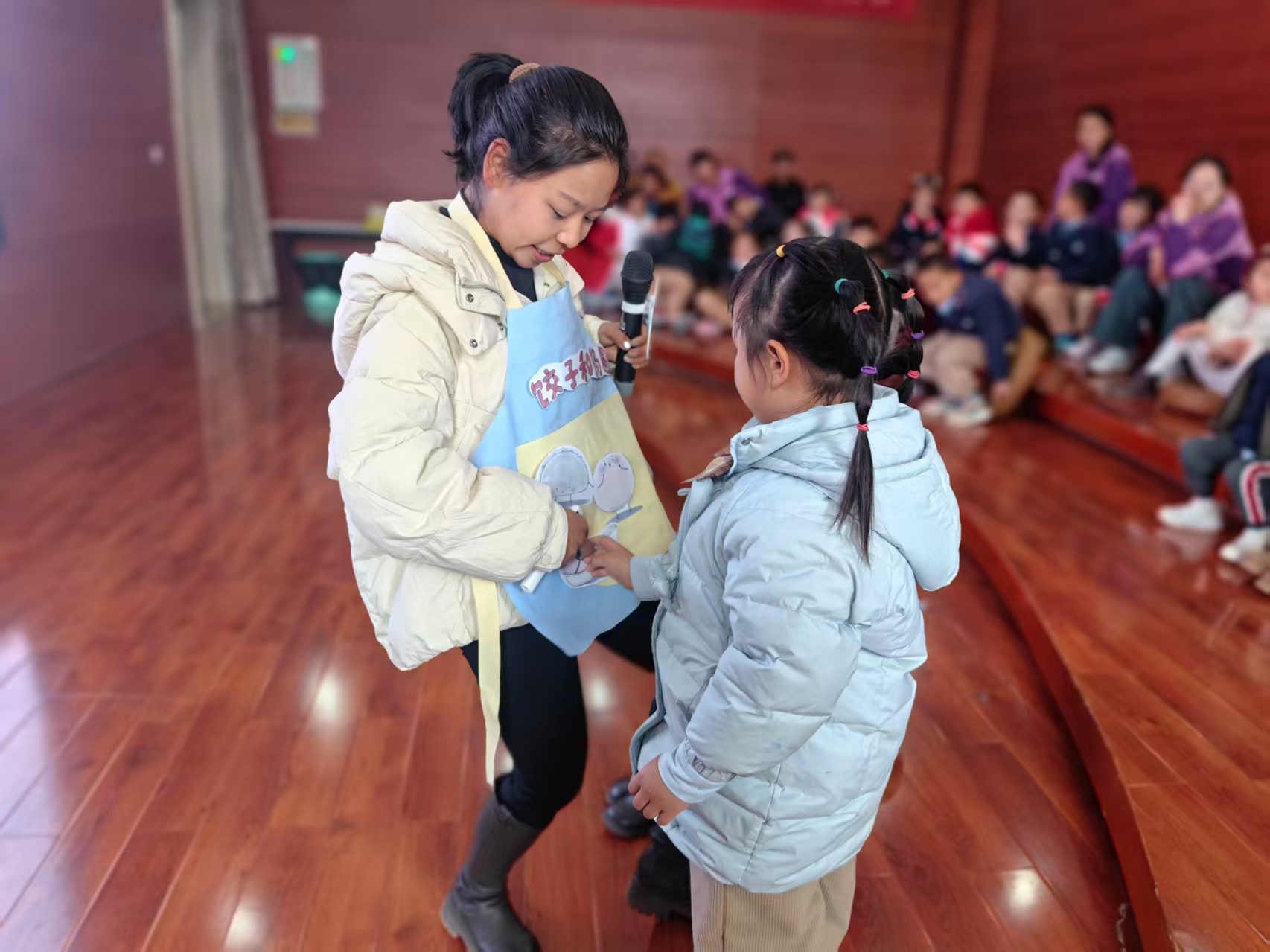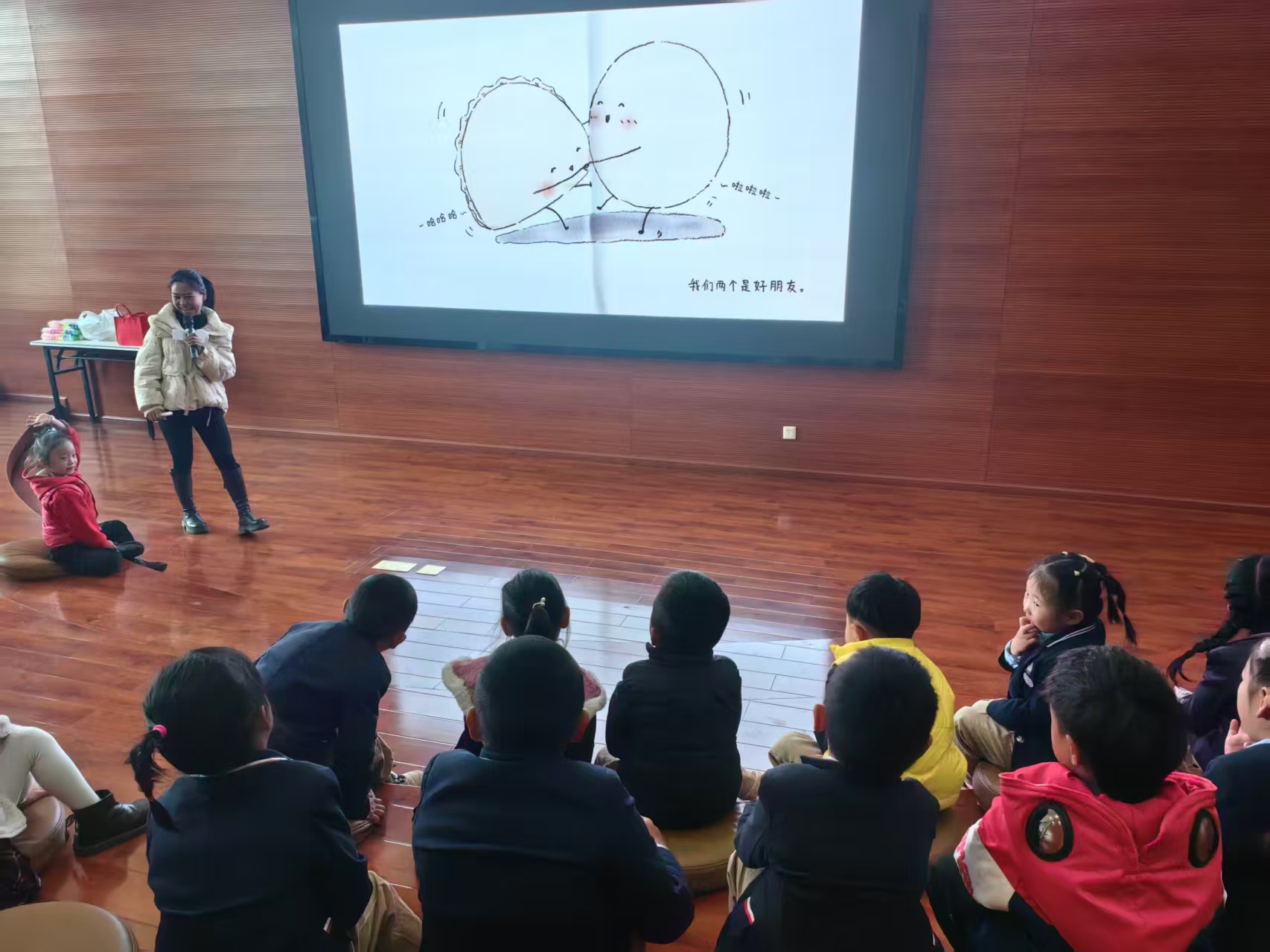 活动中,小霞老师精彩的绘本讲述引得小读者们争相互动,故事结束小读者们无一例外的记住了饺子和汤圆所象征的团圆意义,活泼欢愉的气氛始终萦绕会场。