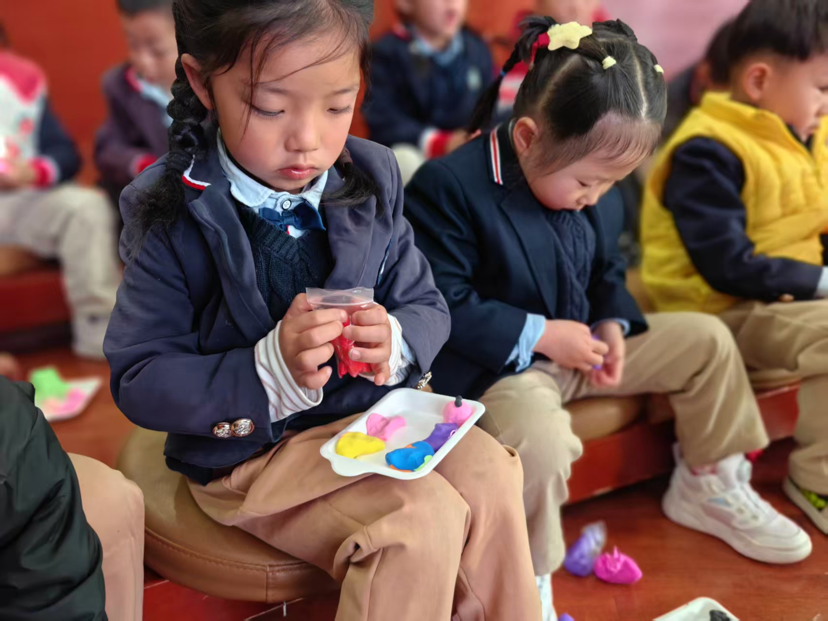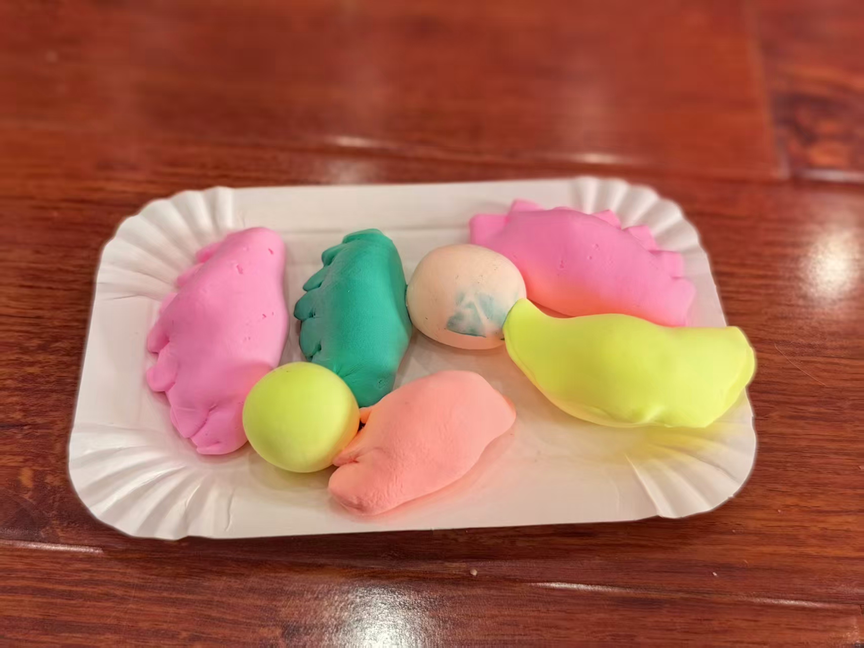 随后,小霞老师给在场小读者们发放超轻黏土,带领孩子们动手现场制作汤圆和饺子的模型。