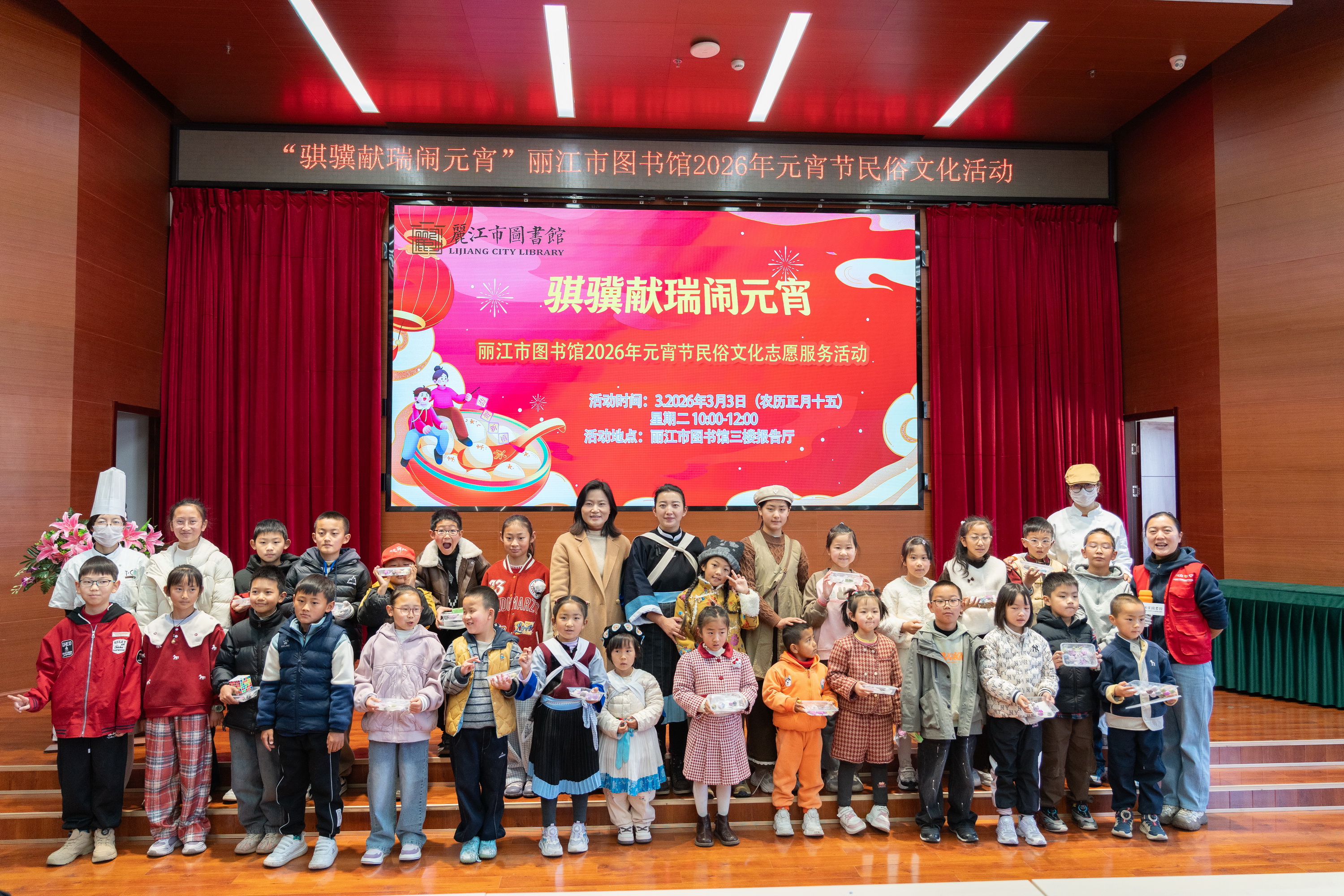 为了丰富市民精神文化生活,让读者在书香氤氲中感受元宵佳节的民俗魅力,3 月 3 日,丽江市图书馆、丽江市少儿图书馆以“骐骥献瑞闹元宵”为主题,举办了一场集民俗文化学习、汤圆手工制作为一体的民俗文化志愿服务活动,吸引了30组读者家庭参与,共同庆祝元宵佳节,活动现场节日氛围满满,其乐融融。