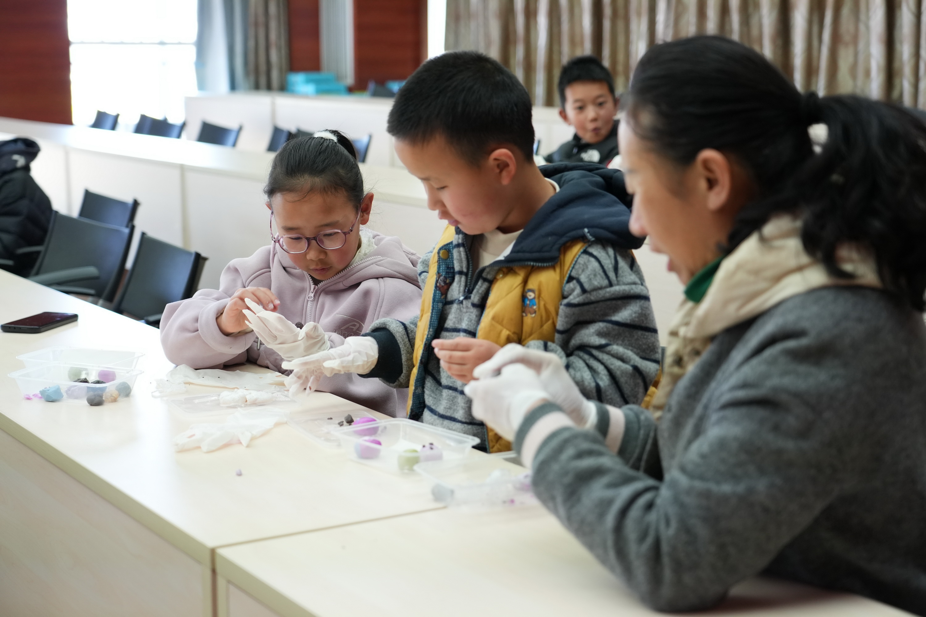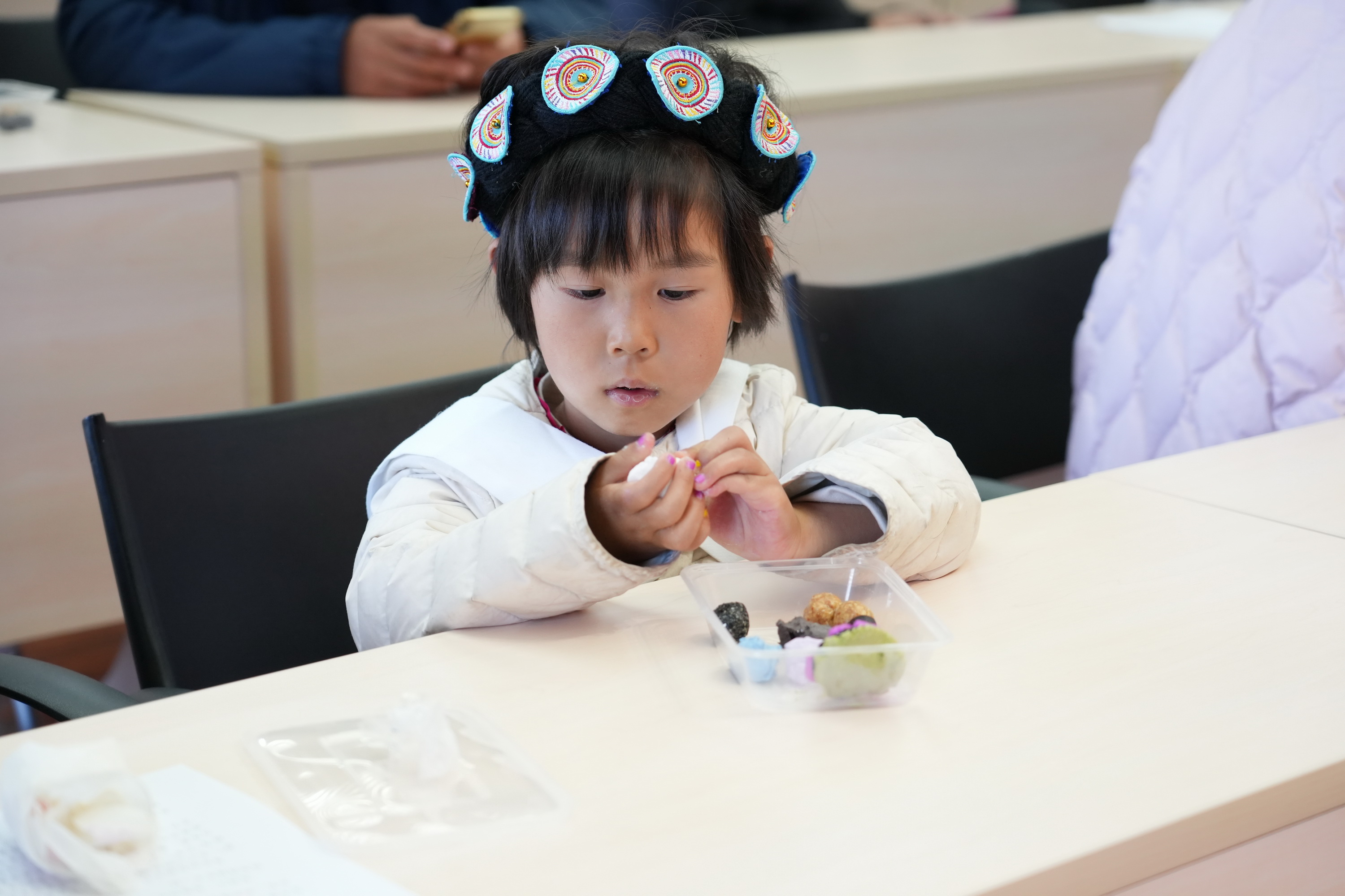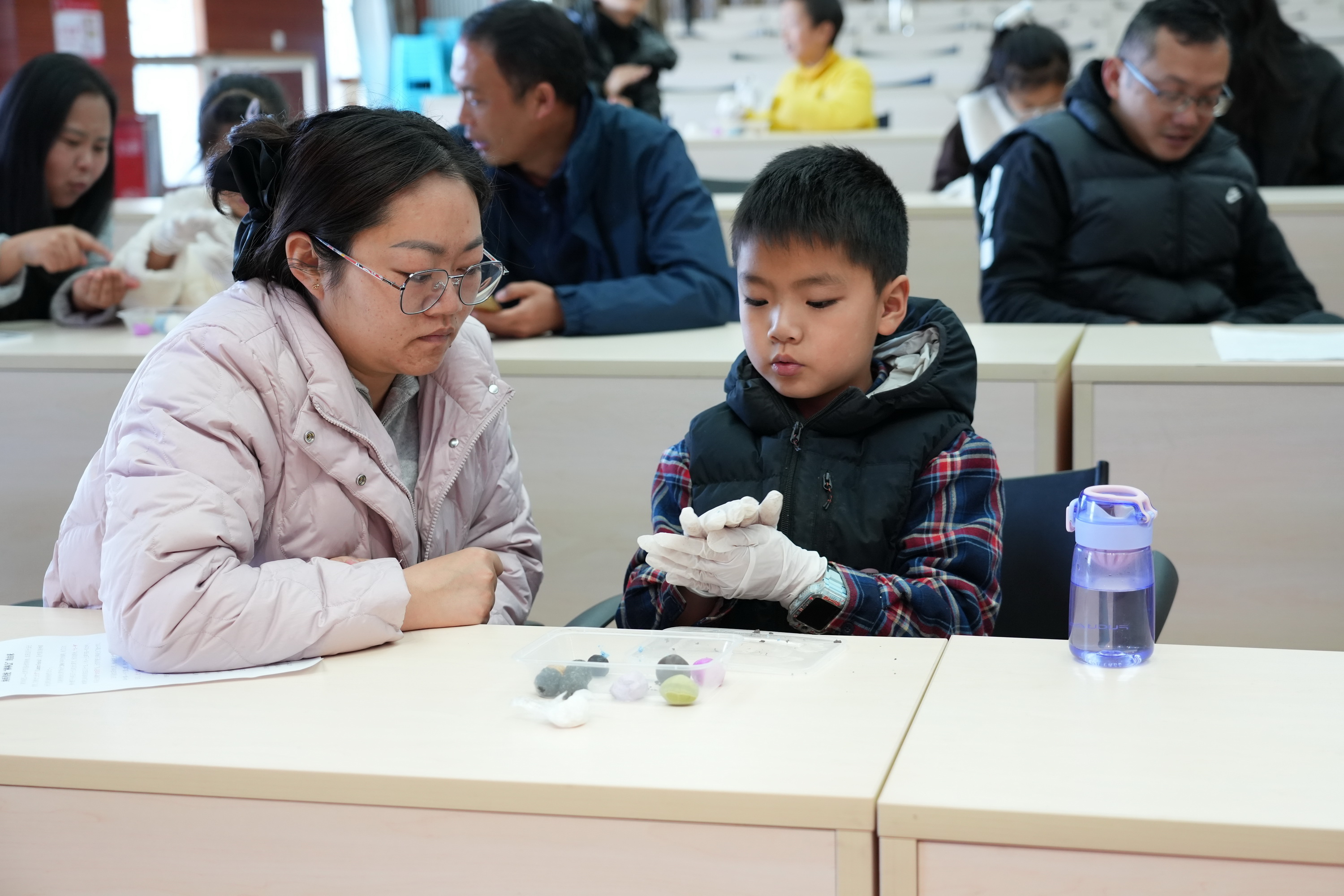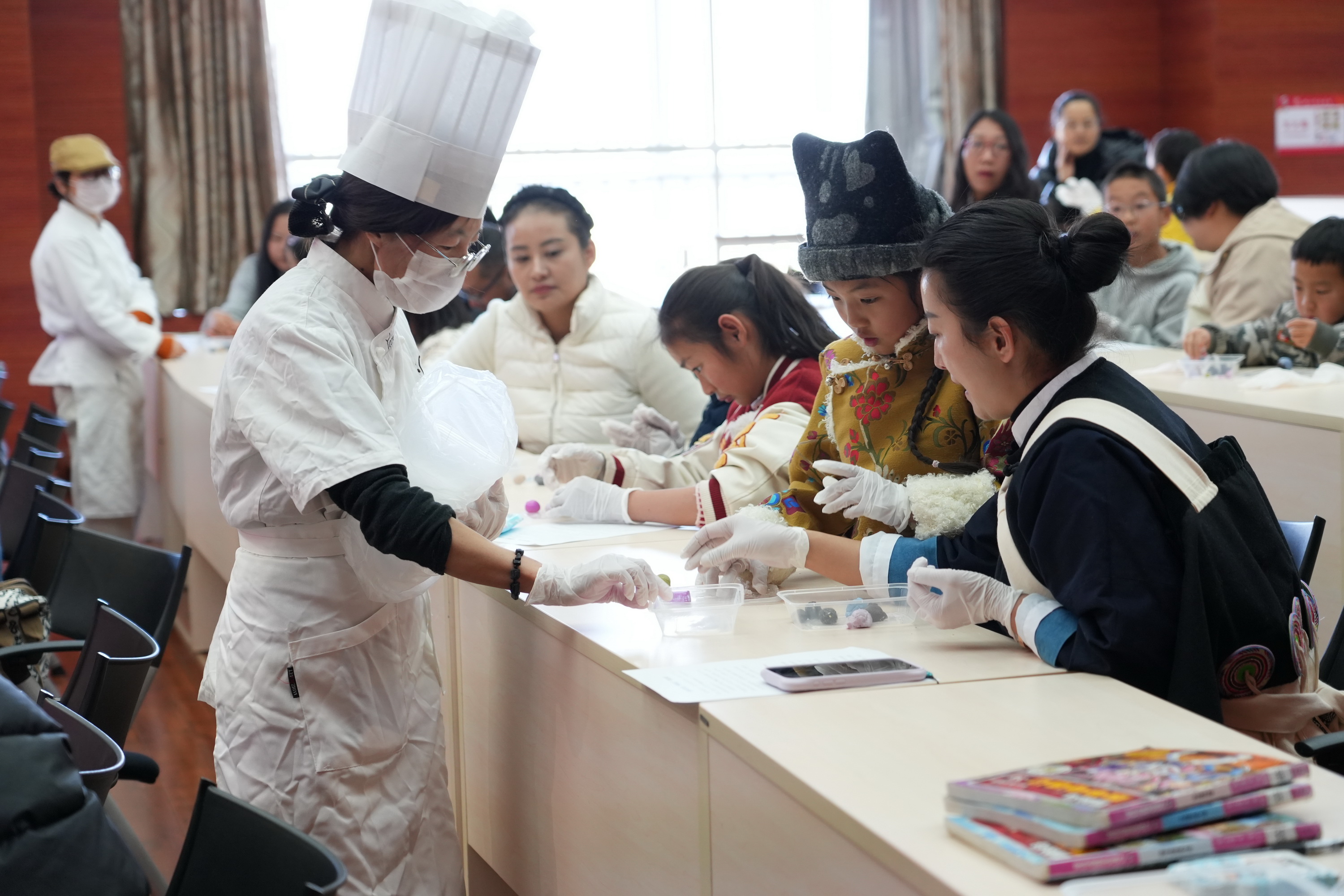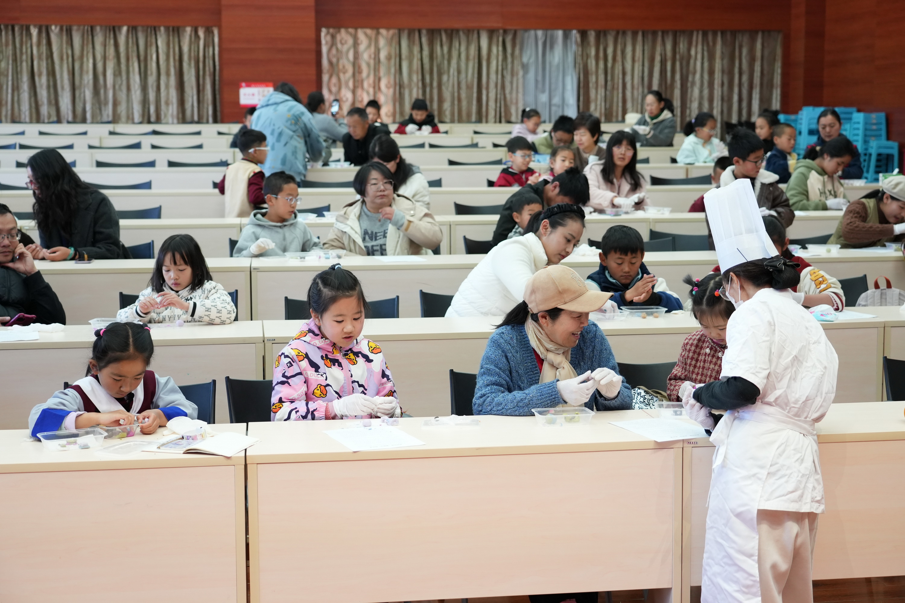 在随后的手工制作汤圆环节,由古城区听柯咖啡馆的专业面点老师现场示范制作过程,手把手指导小朋友们做汤圆,一双双小手笨拙地揉捏着面团,有的搓出了圆圆的汤圆,有的则做出了爱心、星星等创意造型,家长们在一旁耐心指导,现场一派其乐融融的团圆景象。
