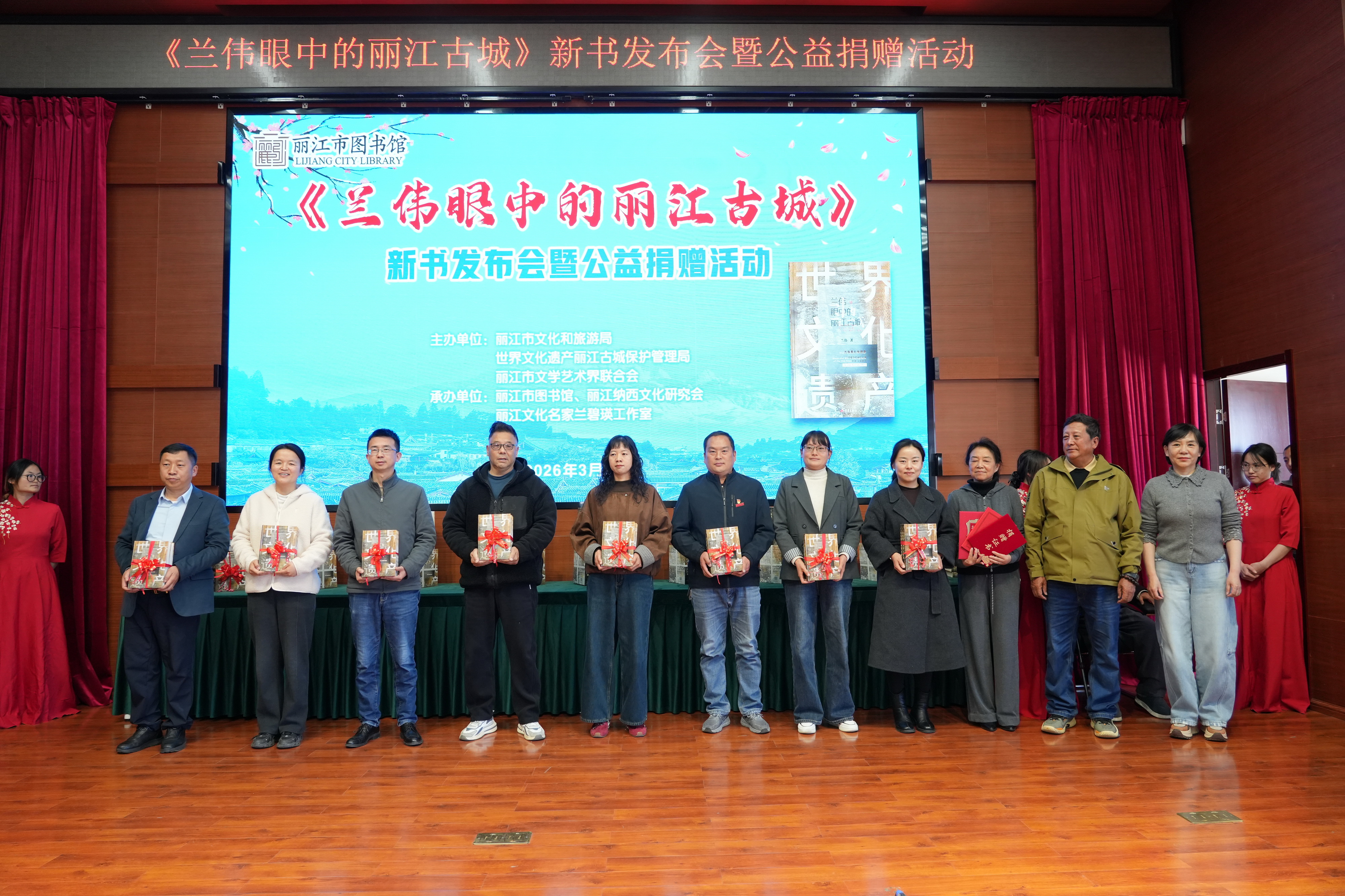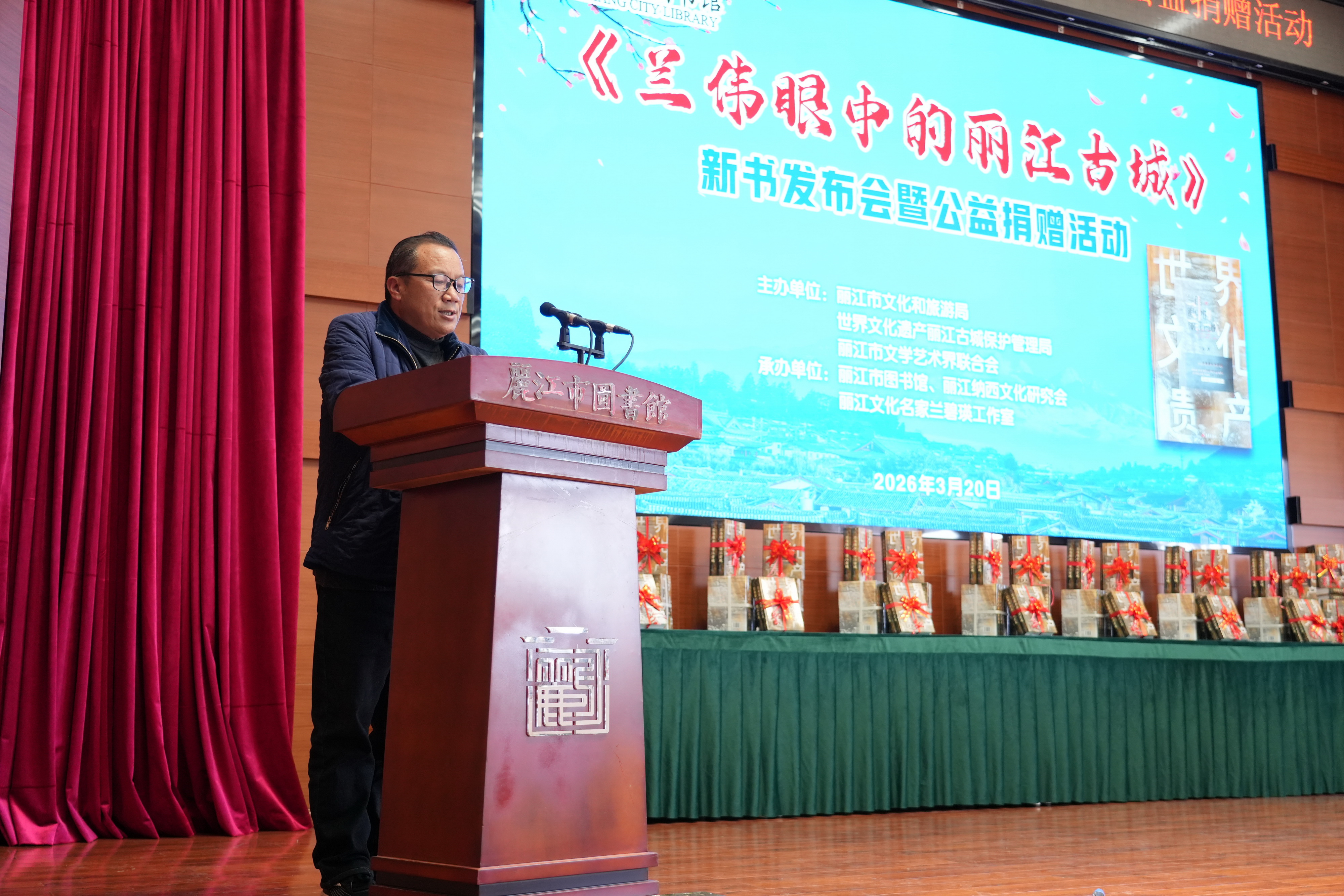 此次活动由丽江市文化和旅游局、世界文化遗产丽江古城保护管理局、丽江市文学艺术界联合会主办。丽江市图书馆、丽江纳西文化研究会、丽江文化名家兰碧瑛工作室承办。