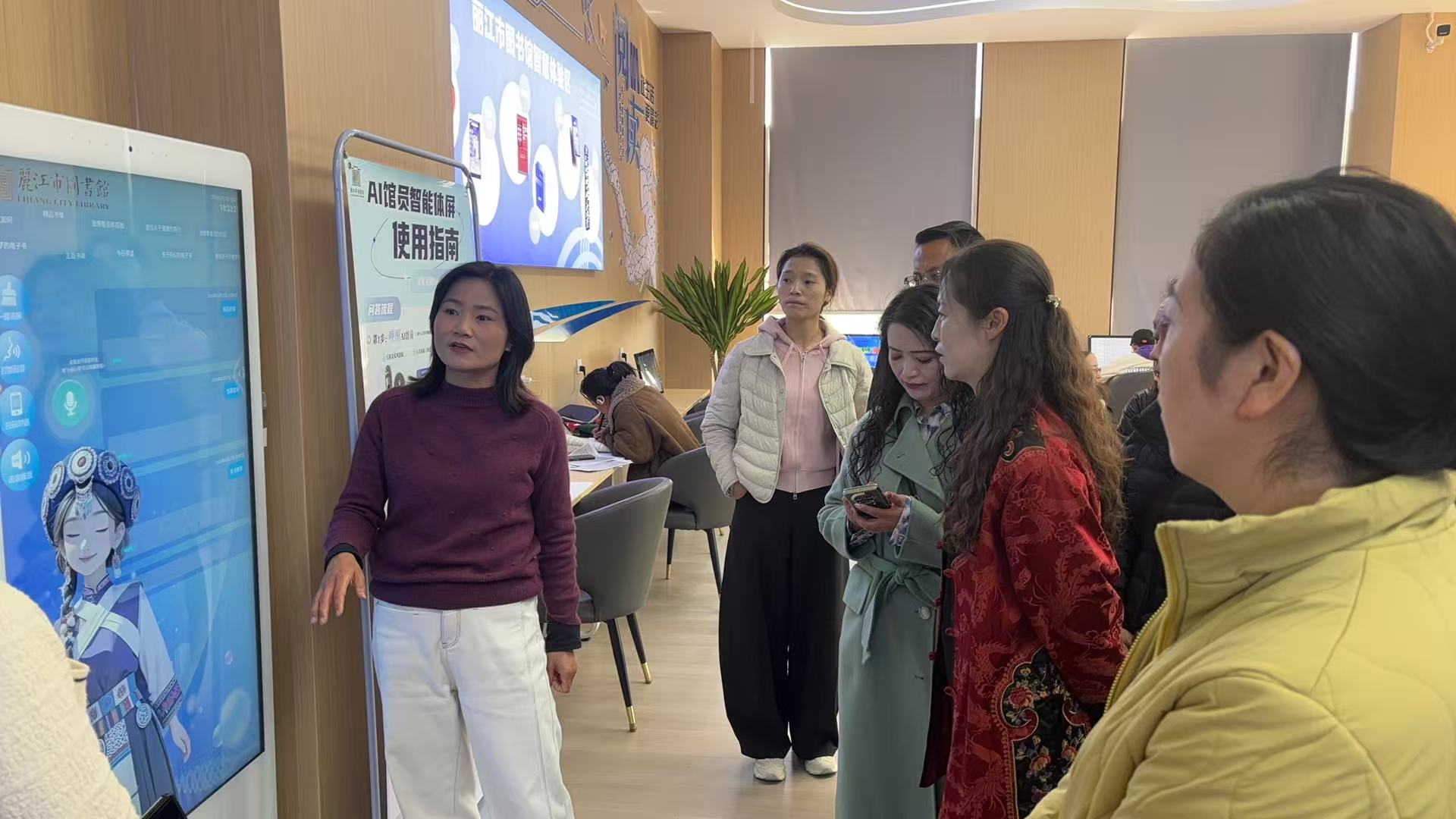 丽江市图书馆馆长范永贞陪同参观了丽江市图书馆少儿阅览区、智慧图书馆体验中心、特色文化展区等相关区域,随后在交流座谈会上,范馆长向学员们详细介绍了我馆在馆藏资源建设、图书馆数字化建设与智慧服务、全民阅读推广、文旅融合服务创新、特色品牌活动打造等方面的实践经验和成果,双方还就全民阅读推广及读者服务工作创新等做法和经验进行了互动交流。