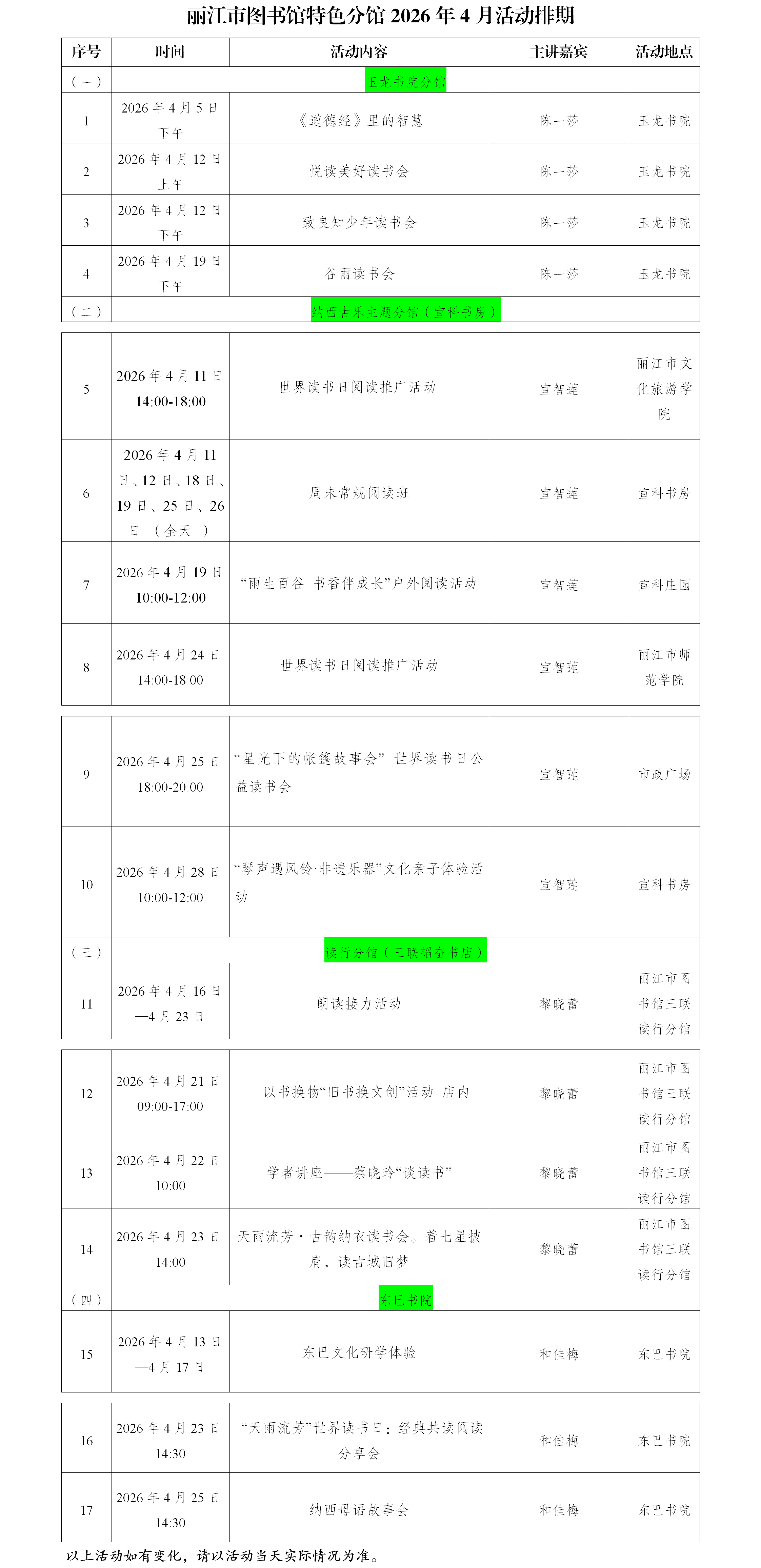 发布时间:2026年4月13日 发布人:丽江市图书馆办公室