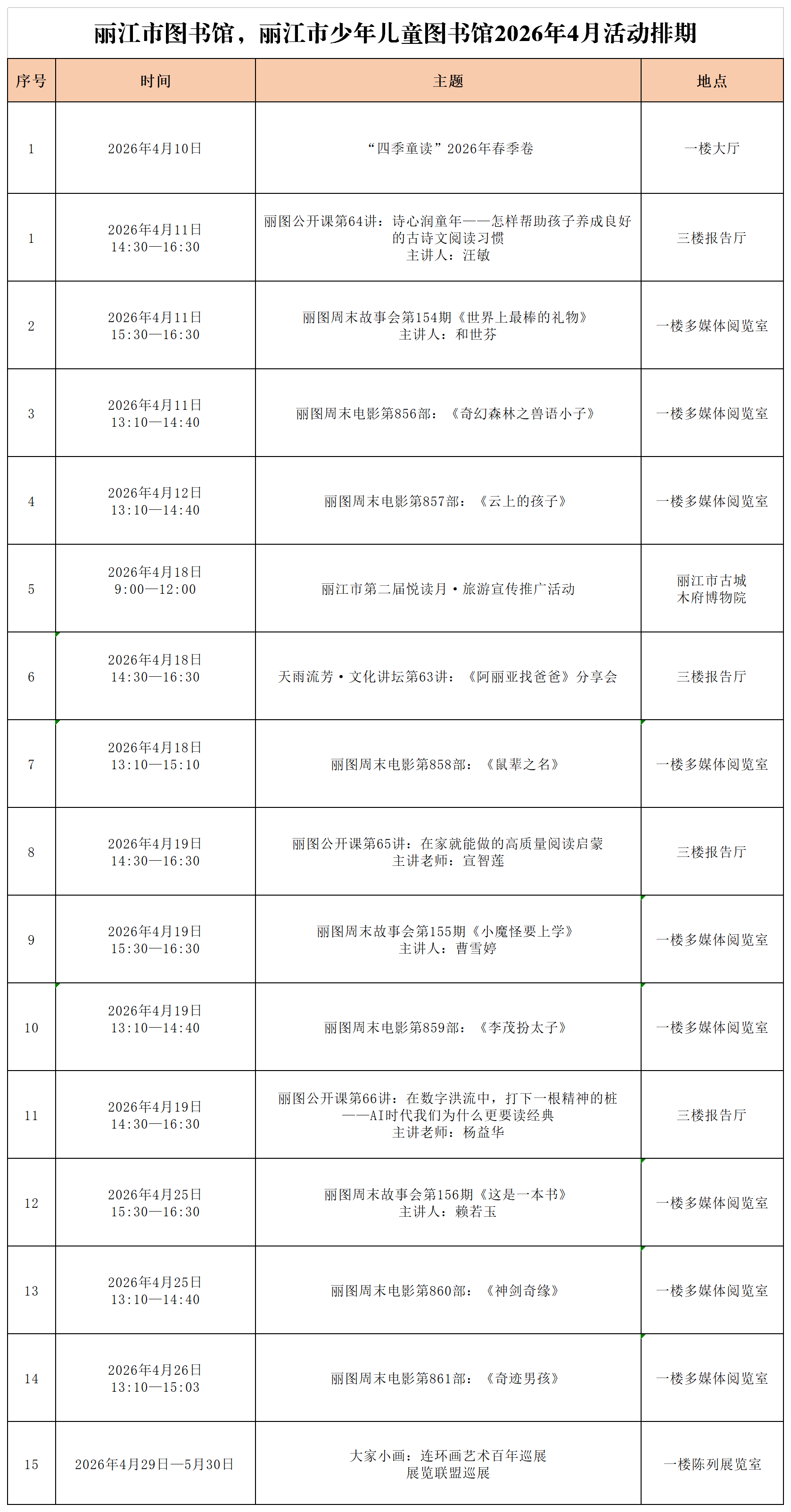 发布时间:2026年4月13日 发布人:丽江市图书馆办公室