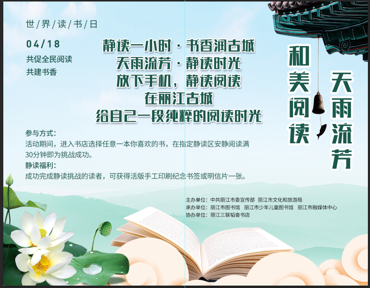 2026年“天雨流芳 书香丽江”全民阅读暨第三届“悦读月”系列活动将于2026年4月18日上午10:30在丽江古城木府举行启动仪式。本届“悦读月”系列活动主要包括启动仪式当天在古城及木府开展的各项活动和“悦读月”各类阅读推广活动。