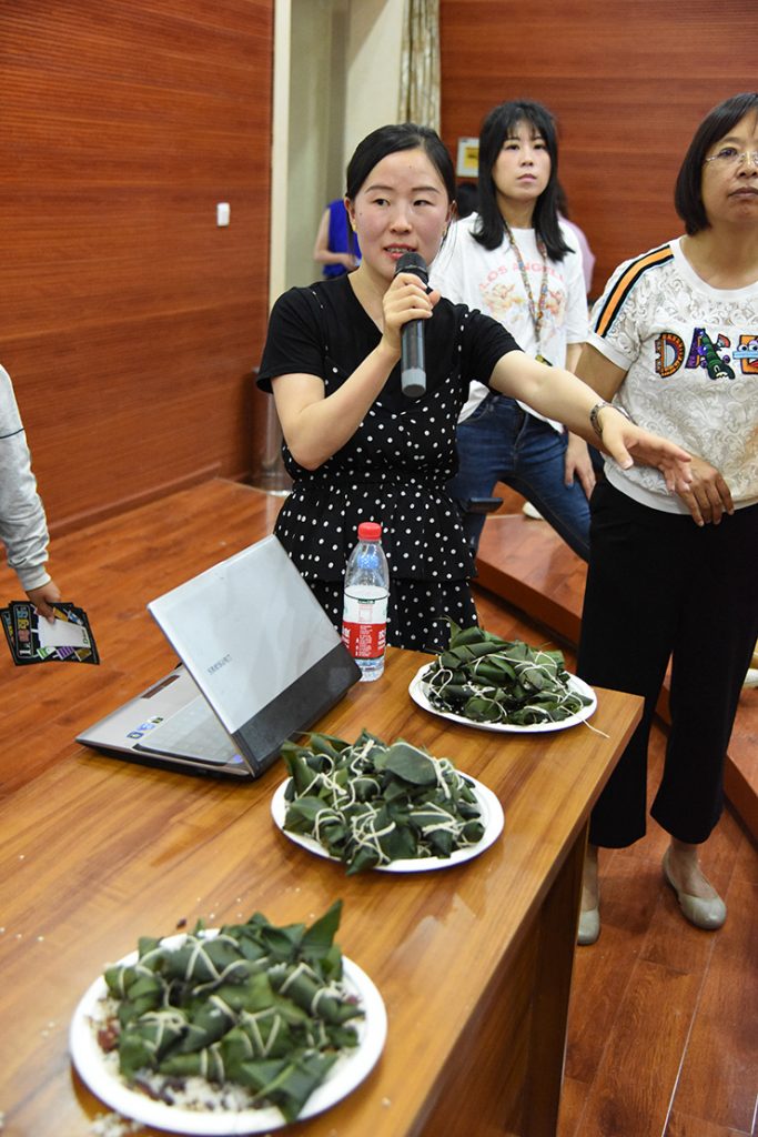 通过课程,读者了解到端午节的历史渊源、学会了用英文表达端午节的名称和时间、知道了不同种类的粽子馅的中英文表达方式、还温故了划龙舟、戴香包、悬艾叶、菖蒲、挂钟馗像及挂五毒符等端午传统习俗。在公开课中,还穿插着问答、猜谜以及互动,现场气氛热烈。